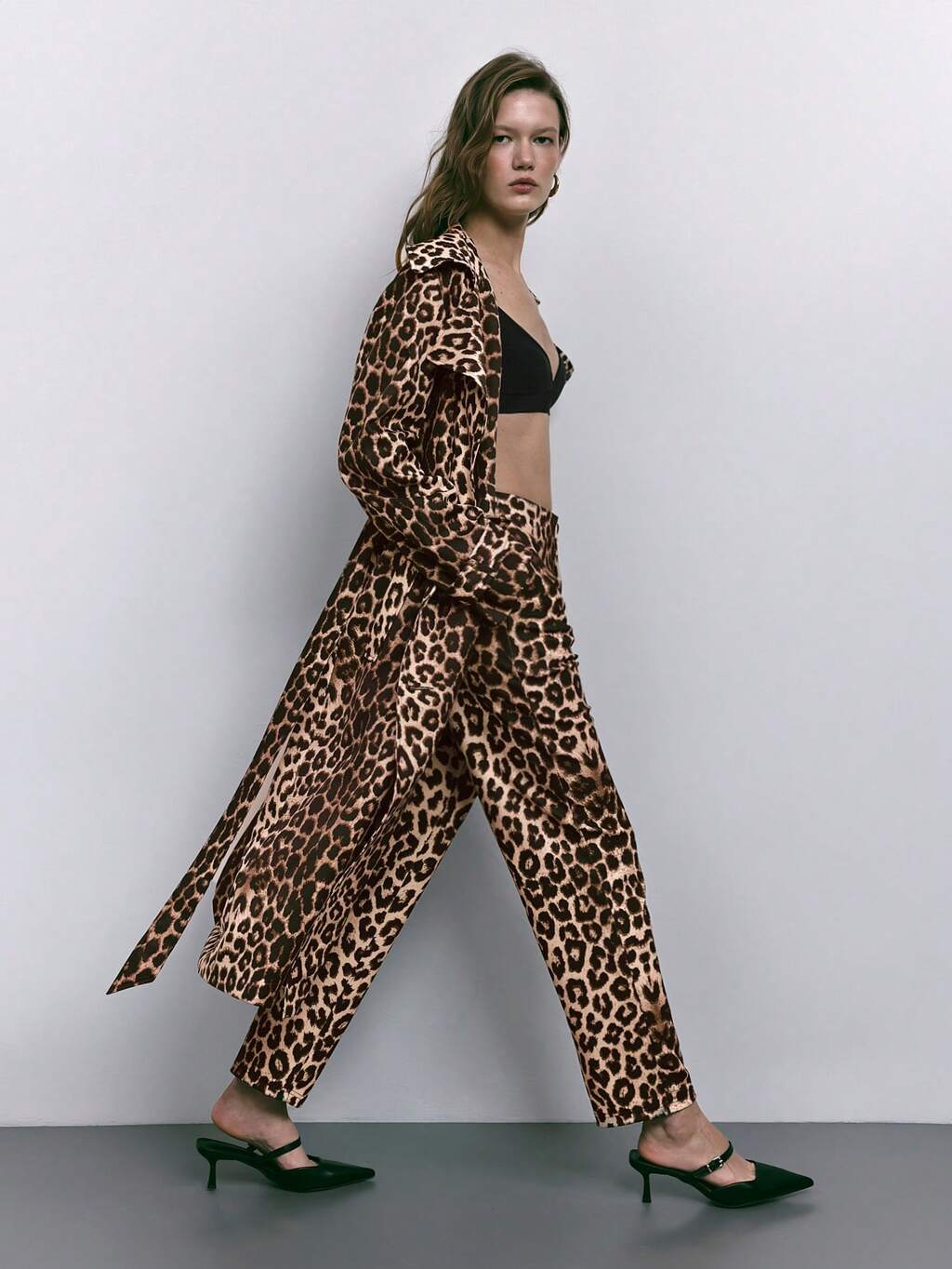 SHEIN Maija Women's Brown Leopard Print Straight Leg Casual Pants With Pockets, Suitable For Autumn/Winter