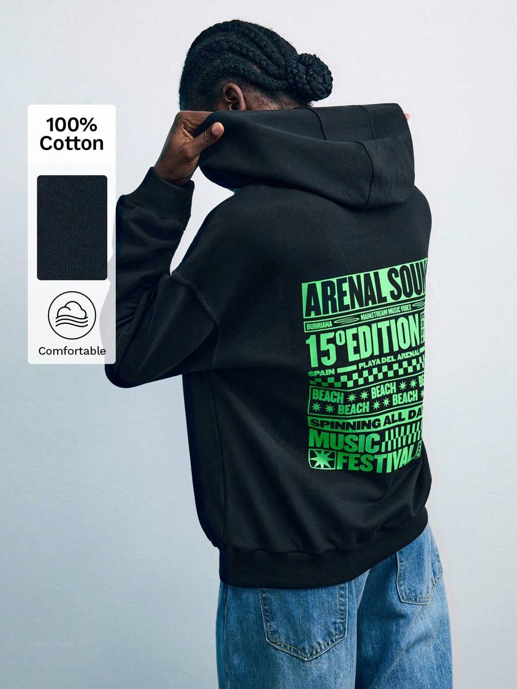SHEIN X Arenal Sound ArenalSound Women's Slogan Print Drop Shoulder Loose Fit Pocket Hoodie Black Hoodie Women Hoodie Essentials Hoodie Graphic Hoodie Autumn Winter Clothes For Women