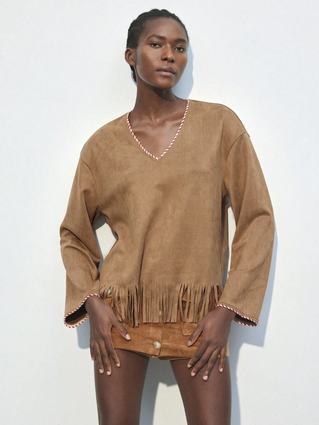 SHEIN Maija Solid Color Split Fringe Boho Chic Personalized Skirt