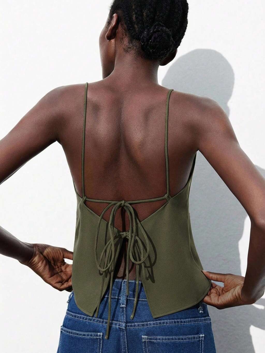 SHEIN Maija 2026 New Gray Adjustable Spaghetti Strap Backless Bow Tie Blouse, Elegant Chic Office Lady Casual Formal Wear, Suitable For Party, Wedding, Beach, Holiday, Thanksgiving, Christmas St Patrick's Day Women Easter Summer Outfits Easter Dress Women Party Top Beach Dress Summer Holiday Outfits Each Vacation Outfits For Women Summer Outfit For Women Going Out Outfits Graduation Graduation Outfit Casual Dresses Casual Blouses For Women,Summer Top