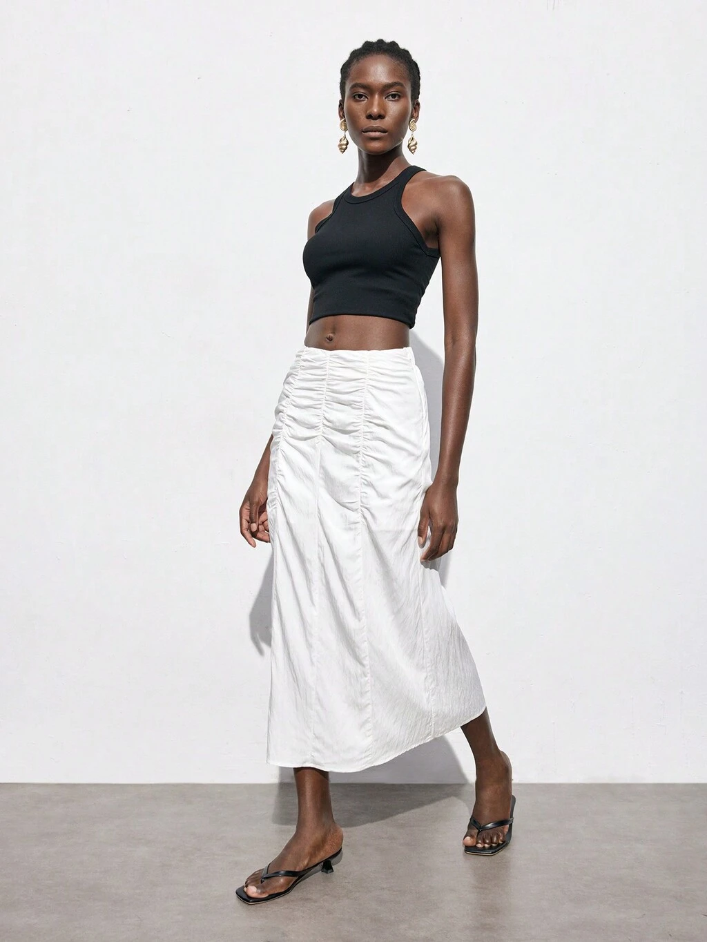SHEIN Maija Ruched Solid Color Textured Skirt, Summer