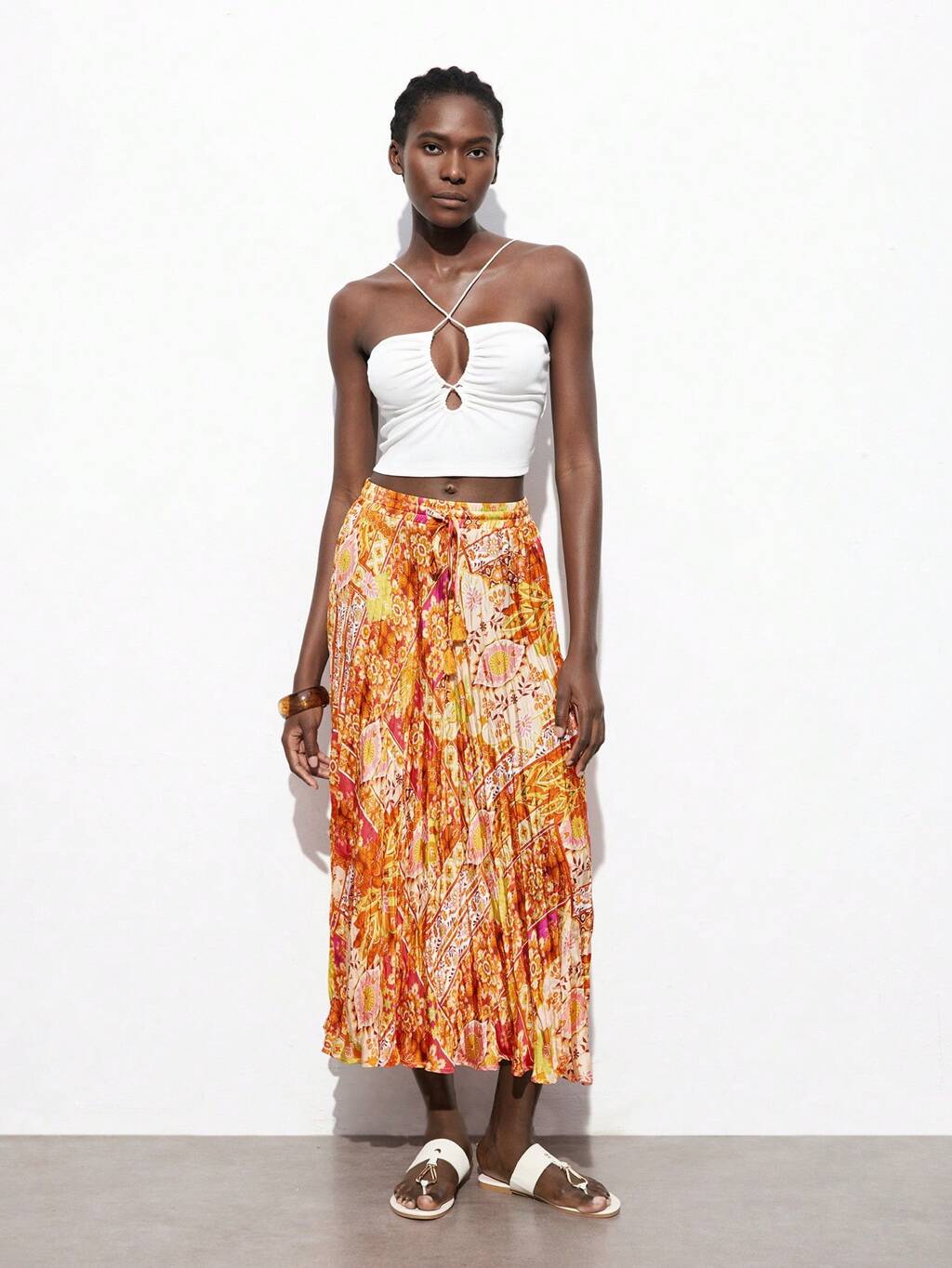 SHEIN Maija Women's Retro Printed Skirt For Vacation