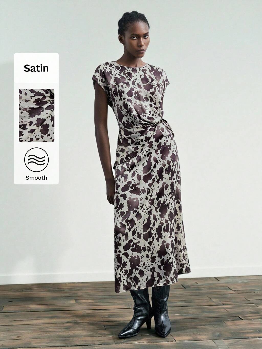 SHEIN Maija Elegantes urban modernes Alltagskleid für Urlaub und Party, schwarz-weißes Zebra-Muster Rückenfreies Kleid, Herbst/Winter