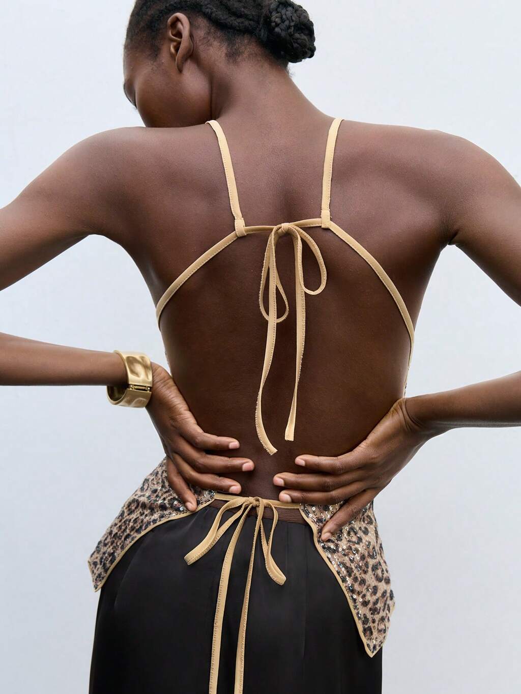 SHEIN Maija Damen Leopard Muster Pailletten Patchwork ärmelloses Crop Top, Casual, bequem und sexy Design, geeignet für Sommer Musikfestivals, Partys, Urlaub, Geburtstagsfeiern, Sommer Ausgehoberteil, Club Sexy Rückenfreies Top, Ausgehoberteil, Rave