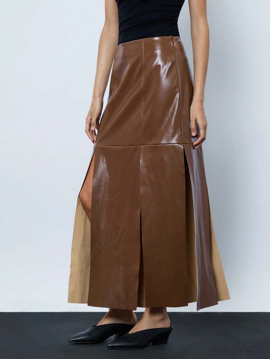 SHEIN Maija Damen hochgeschlitzter eleganter Rock aus einfarbigem PU-Leder, Herbstmode für Frauen
