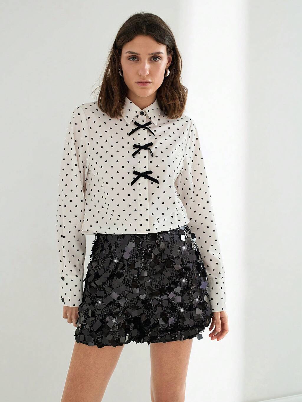 SHEIN Maija Damen Schwarze Pailletten Shorts mit Seitlichem Reißverschluss, Locker Hohe Taille Elegant Mode Sommer für Urlaubspartys, Musikfestivals