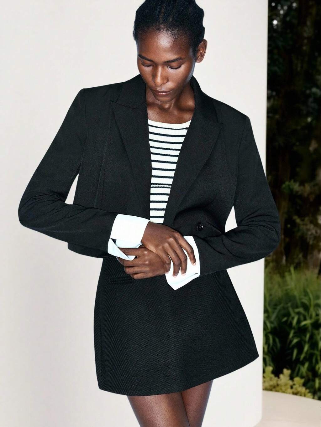 SHEIN Maija Damen gestreifter Westen & Rock Anzug Set