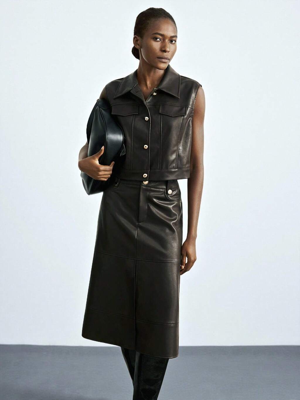 SHEIN Maija 2025 Damen einfarbige, einreihige, lässige PU-Jacke für Herbst, Halloween, elegant, Goth, klassisch urban, mit Metallschnallen-Design, für Winter, Herbst, Nationalfeiertag, Neujahr, Ausgehen