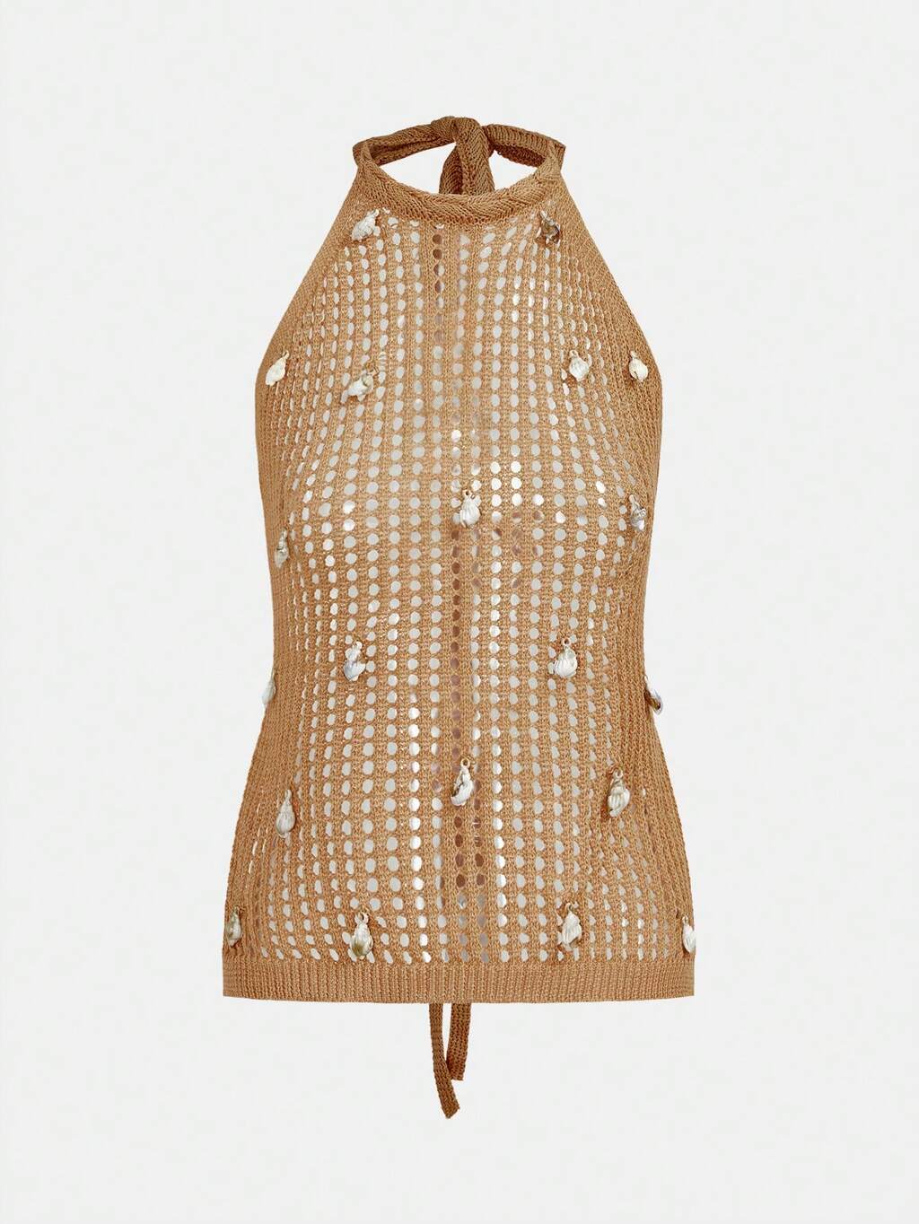 SHEIN Maija Damen Hohldekoration Muschel gestrickter Neckholder Strandüberwurf