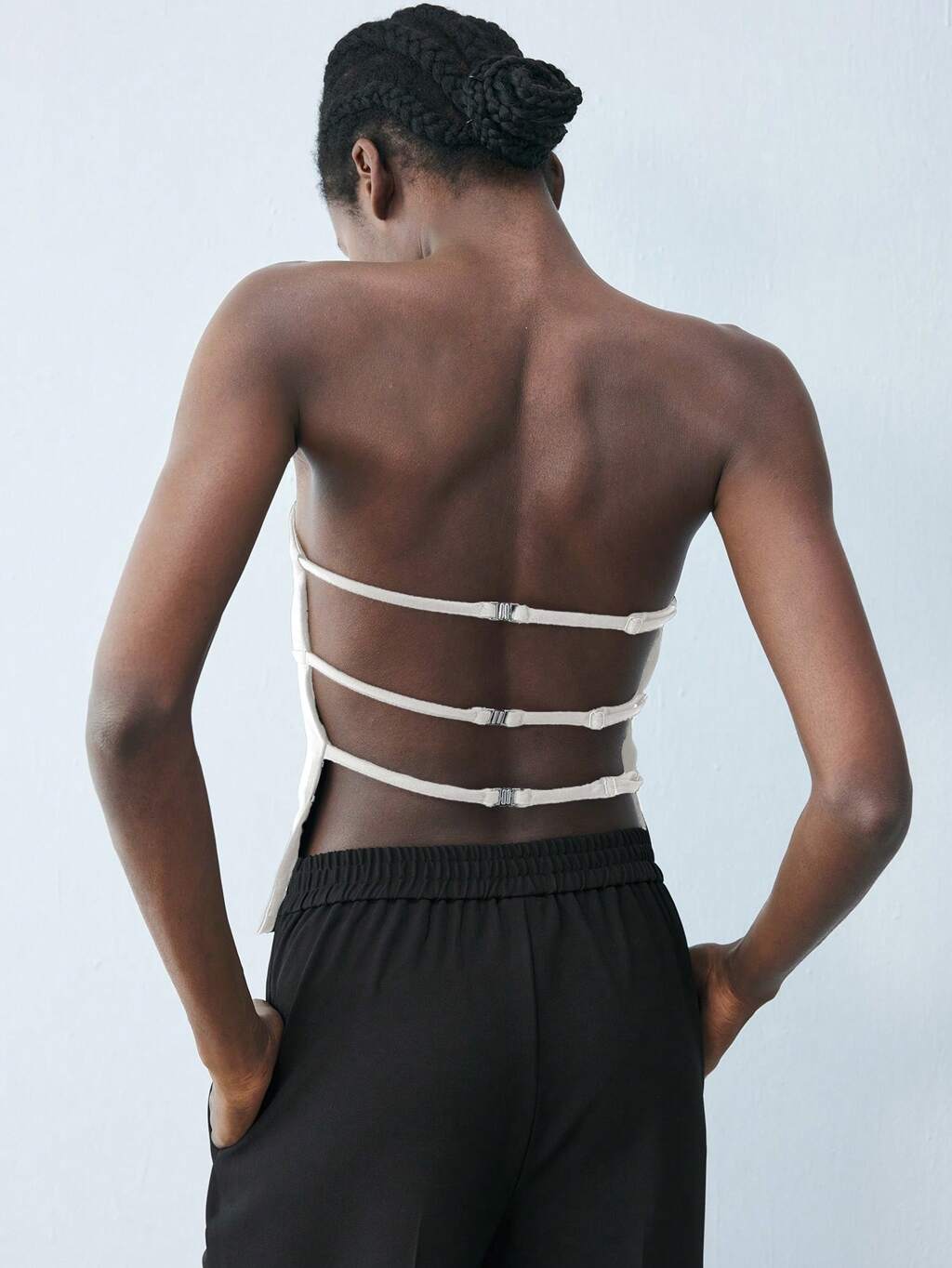 SHEIN Maija Damen Weißes Top mit offenem Rücken und verstellbarer Verzierung, modisch für den Arbeitsweg, Business Casual, Vintage Stil, sexy rückenfrei Trägertop, Herbst moderne urbane Casual Fashion Business Casual Büromode Understatement Old Money Stil urbaner Arbeitsweg Flughafen Damenbekleidung Material