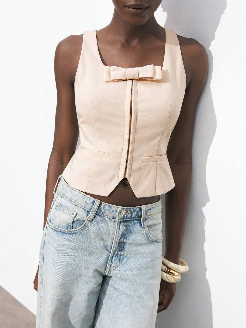 SHEIN Maija 2025 Sommer Neuheiten Vorderverschluss mit Metallhaken und Schleifen-Dekor, moderner lässiger Cardigan, vielseitig für Alltag, Formal, Urlaub, geeignet für Ausflüge, Partys, Hochzeitsgäste, Lässig, Musikfestivals, Abschluss