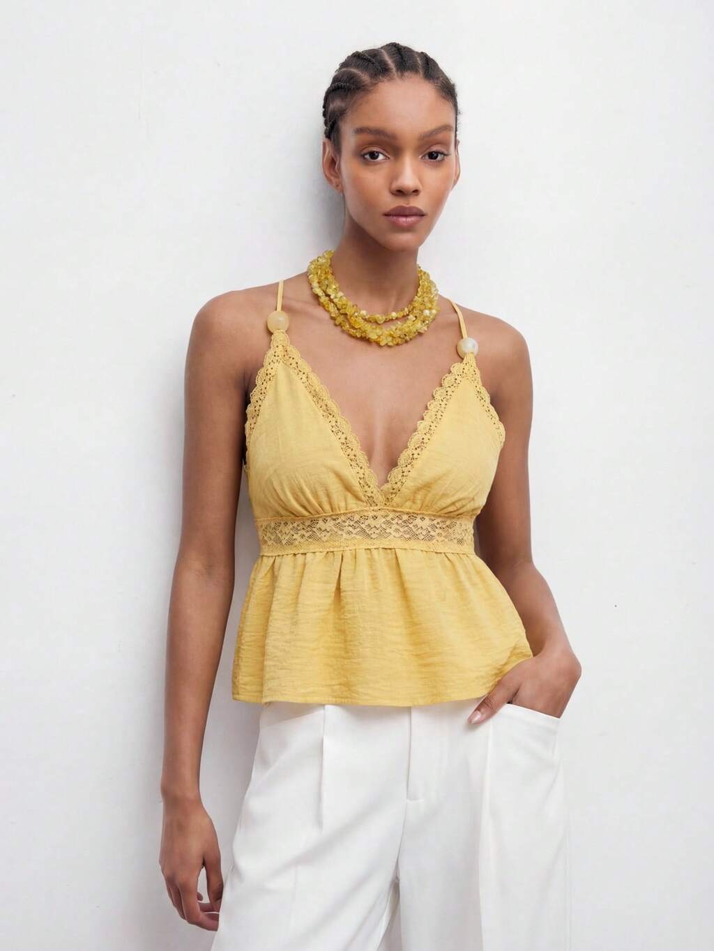 SHEIN Maija Top halter sin espalda con parches de encaje de unicolor casual de vacaciones para mujer
