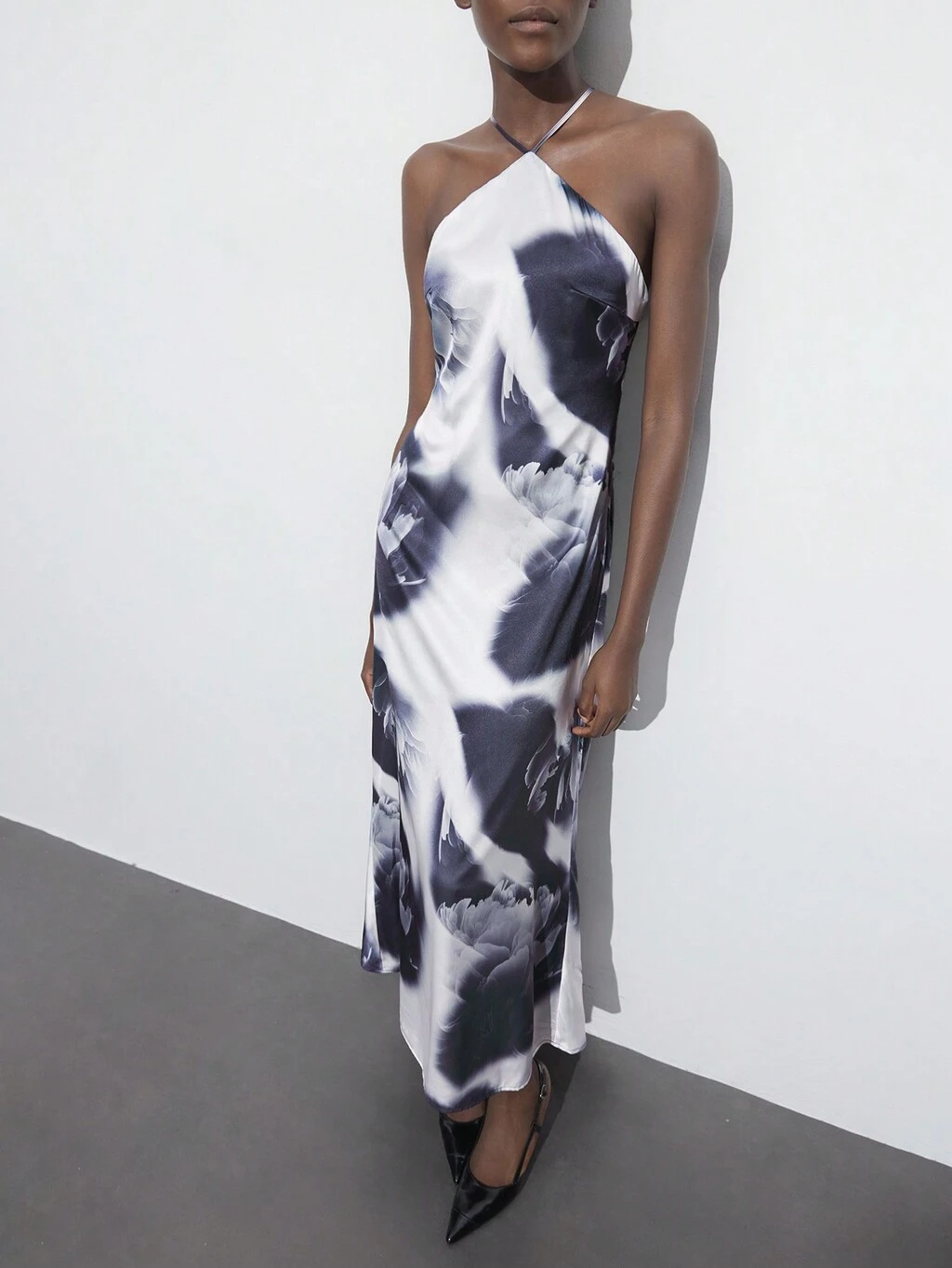 SHEIN Maija Nuevo vestido largo elegante para damas de primavera/verano con la cintura ceñida, estampado artístico en blanco y negro, sexy y casual, adecuado para citas, reuniones, bodas, uso en la ciudad o en la playa