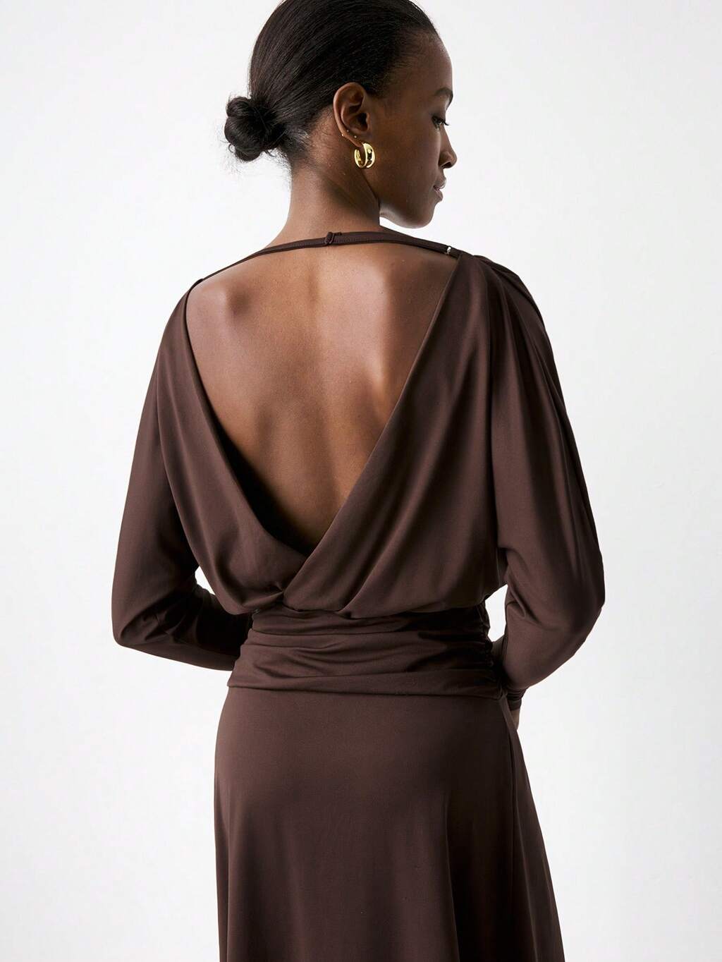 SHEIN Maija Vestido elegante de unicolor con espalda descubierta y abertura alta. Diseñado con elegancia. Adecuado para el transporte urbano, ocasiones de negocios, casual, vacaciones en la playa. Versátil para festivales de música, San Valentín, reuniones de verano, que muestra elegancia y confianza femenina.
