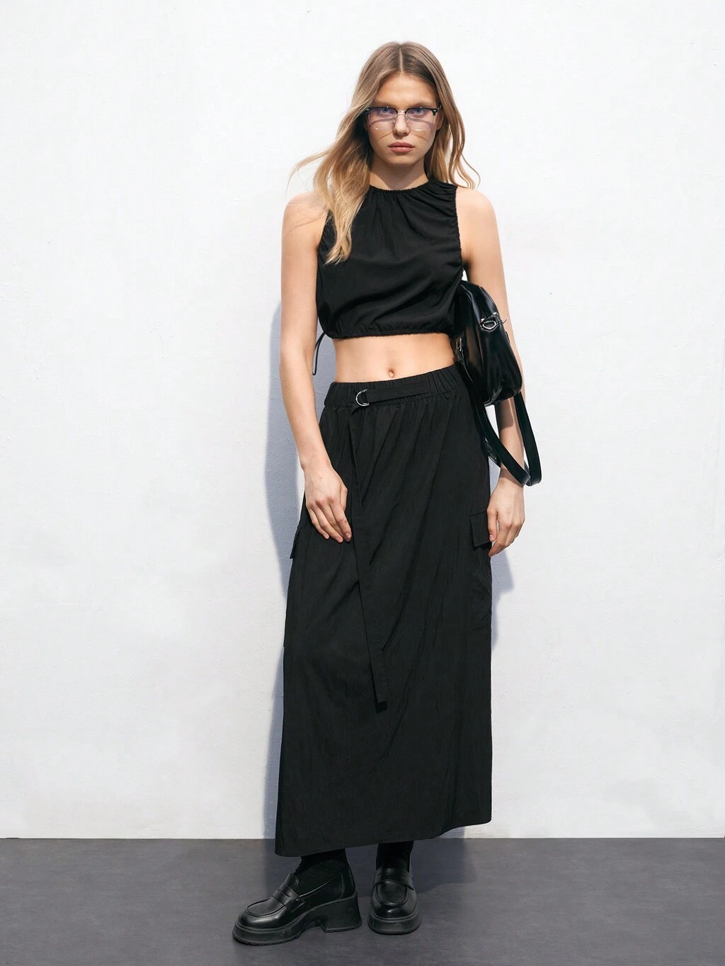 SHEIN Maija Conjunto Dos Piezas Para Mujer De Verano Con Top Corto De Color Sólido Con Cuello Halter Y Falda Larga Acampanada