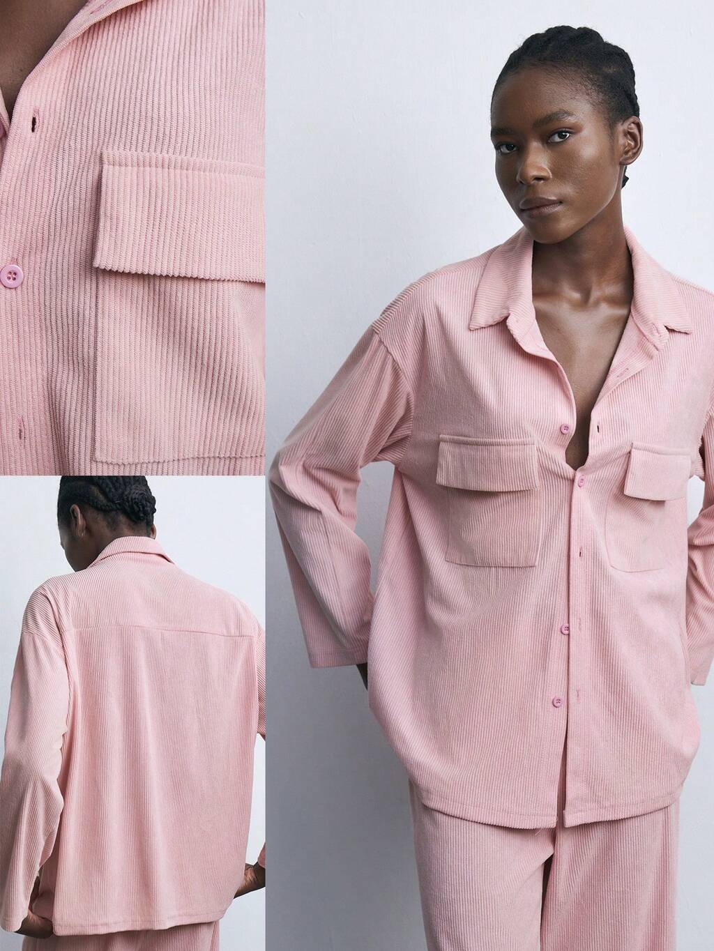 SHEIN Maija Nueva camisa de pana rosa de elegante estilo urbano retro para otoño/invierno, casual y abrigada para exteriores