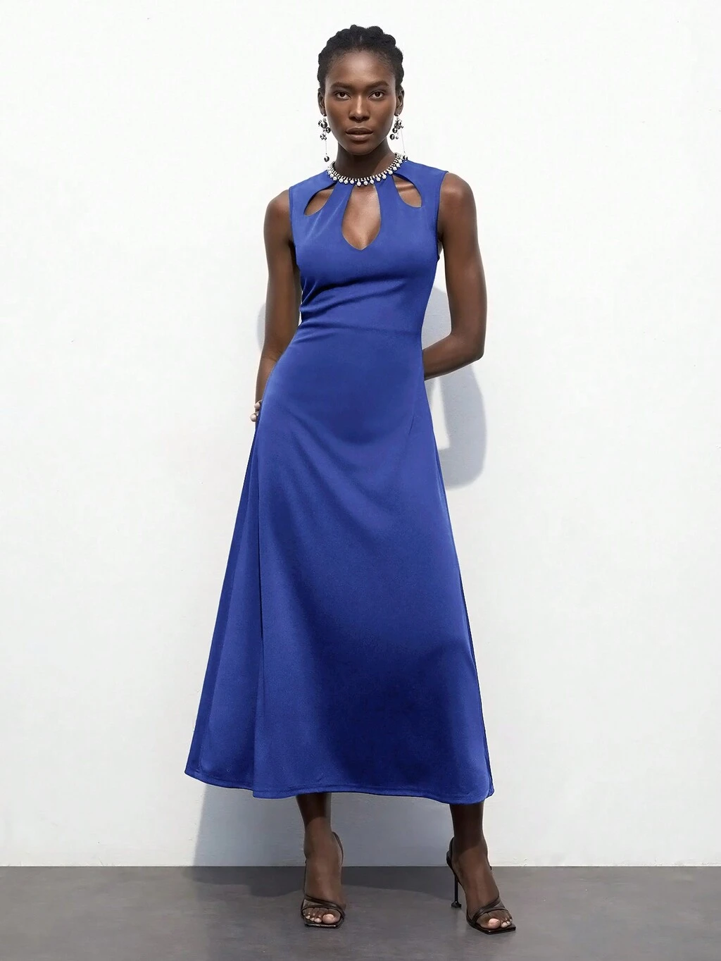 SHEIN Maija Vestido con hebilla, de falda acampanada, con escote de cadena con strass, calado y decoración hueca, para boda de verano