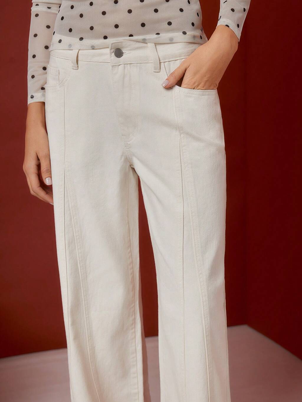 SHEIN Maija Jeans blancos para mujer, de tiro bajo y pierna recta, de cómodo denim de algodón puro, perfectos para uso casual de verano. Pantalones color crema, pantalones de trabajo para mujer