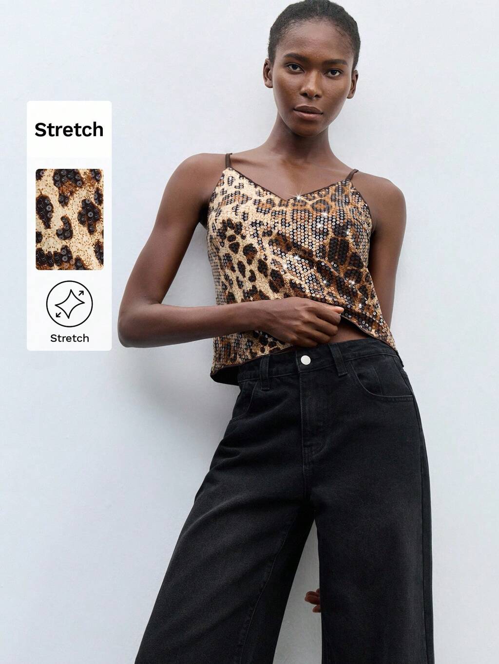 SHEIN Maija Camiseta de mujer con lentejuelas de estampado de leopardo, glamorosa y de moda