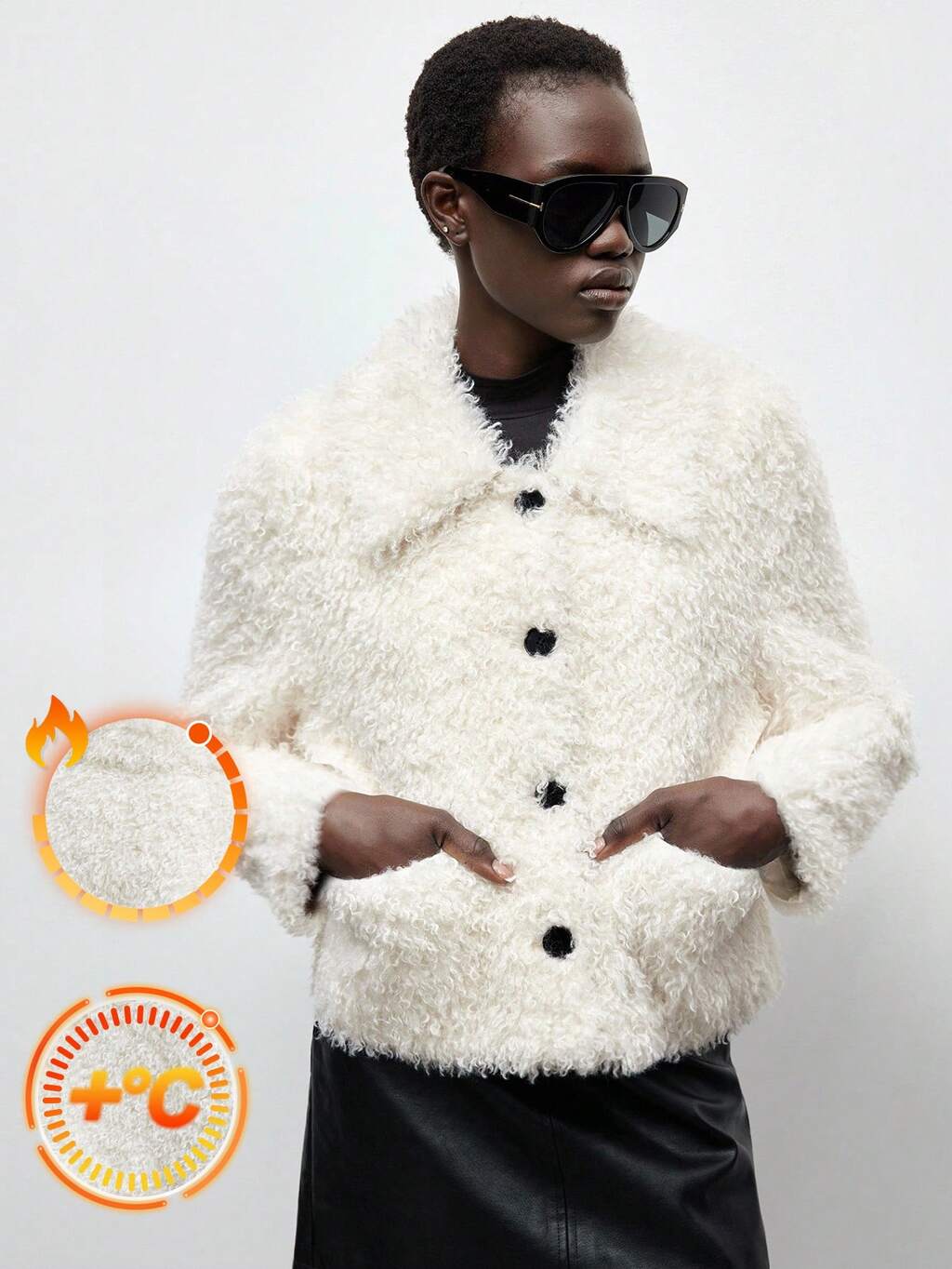 SHEIN Maija Chaqueta de manga larga con botones delanteros de unicolor, forrada de piel sintética cálida, de moda para otoño/invierno