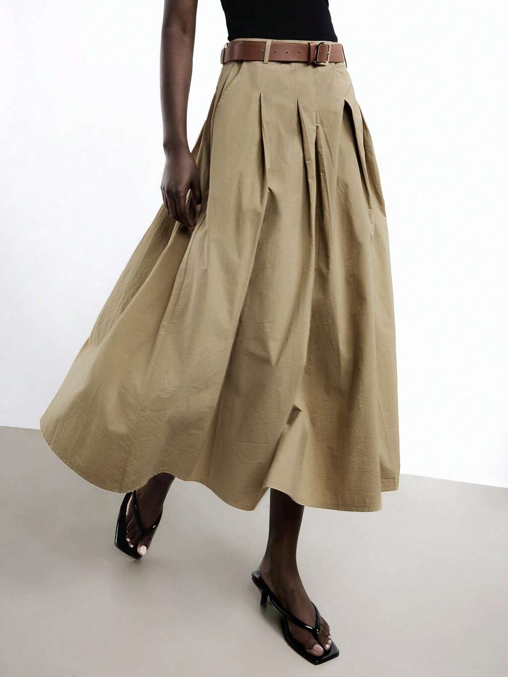 SHEIN Maija Falda de mujer con diseño de bolsillo plisado lateral desmontable, cinturón de metal de piel de PU, elegante para carnaval, fiesta, San Valentín, escuela, festival de música, ocasiones formales, transporte urbano, nueva colección primavera/verano