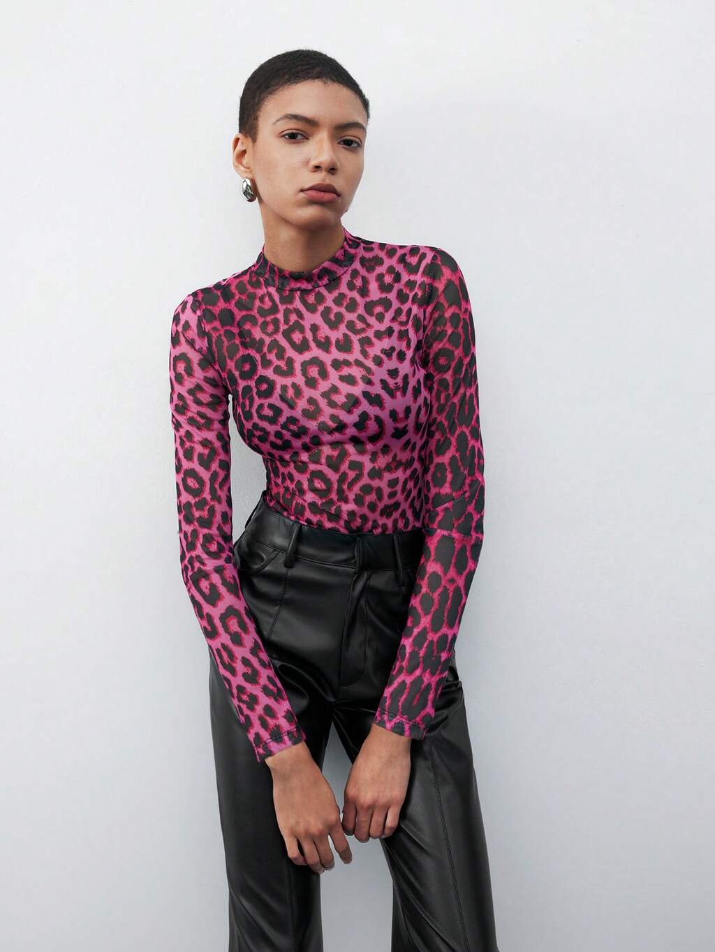 SHEIN Maija Top en maille léopard col montant sans soutien-gorge, top pour la Saint-Patrick, Pâques, fête, plage, vacances d'été, sortie, remise de diplôme