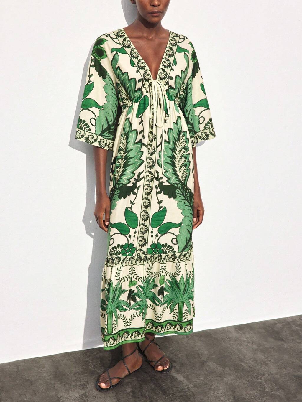 SHEIN Maija Robe mi-longue imprimée à col V avec torsade, sans manches, coupe évasée, vibe vacances pour femmes, été