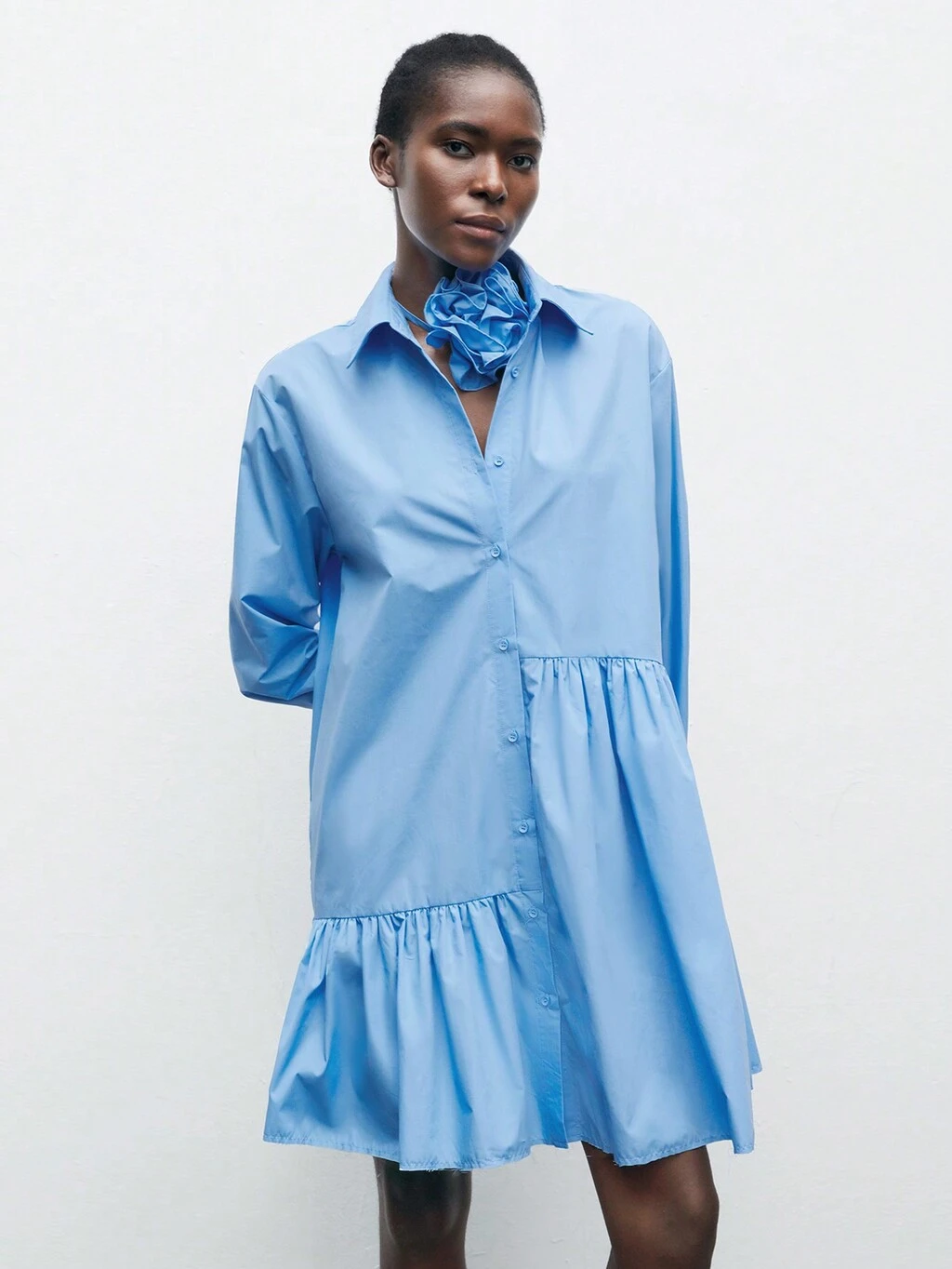 SHEIN Maija Robe bleu femme de ligne A asymétrique avec volants détachables en fleurs 3D