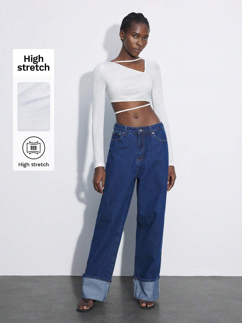 SHEIN Maija Top moulant asymétrique pour femmes avec détail de laçage ajustable aux épaules, design urbain moderne et . Idéal pour le printemps/été, les sorties, les concerts et les vacances. Style hippie et look modeste.