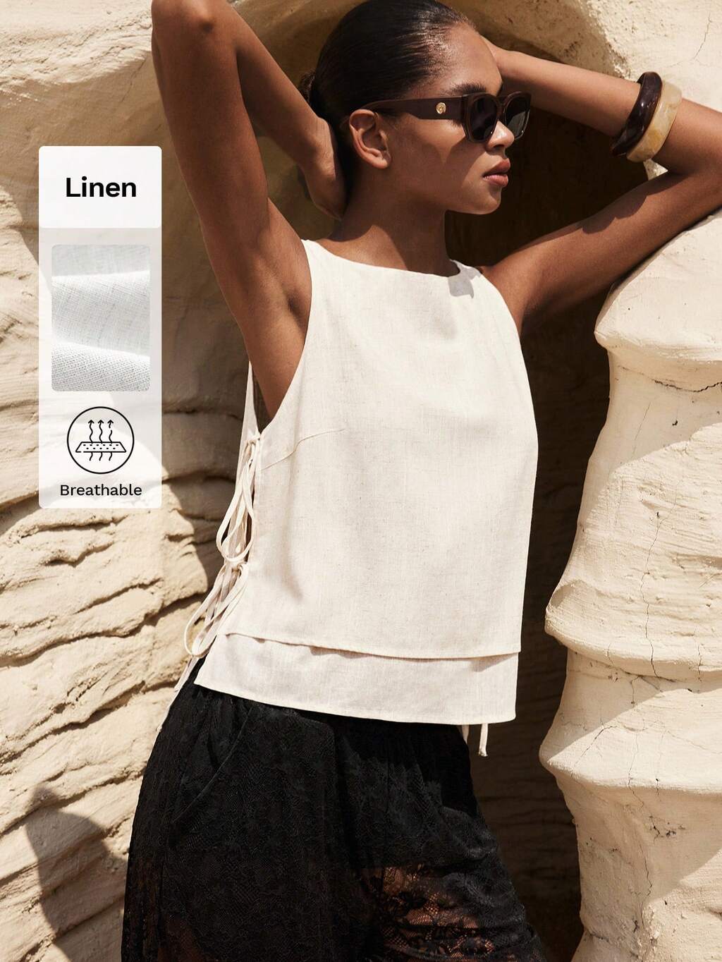 SHEIN Maija Canotta casual da donna con laccio laterale e collo rotondo, estiva
