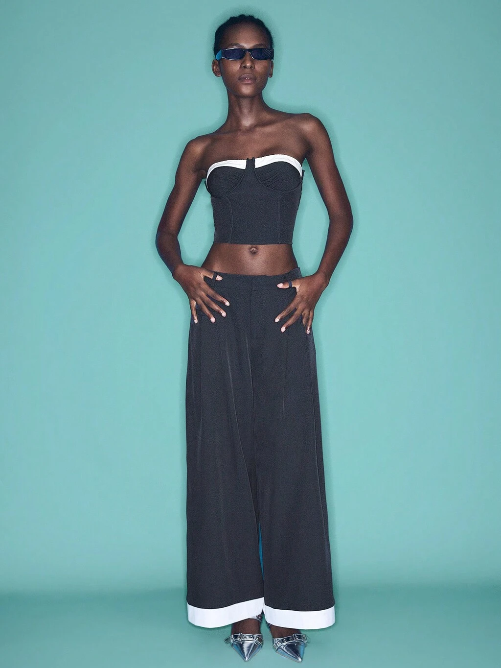SHEIN Maija Blusa aderente senza schienale e senza maniche con decorazione a fiocco e strass, design minimalista per donna, adatta per primavera/estate, feste, San Valentino