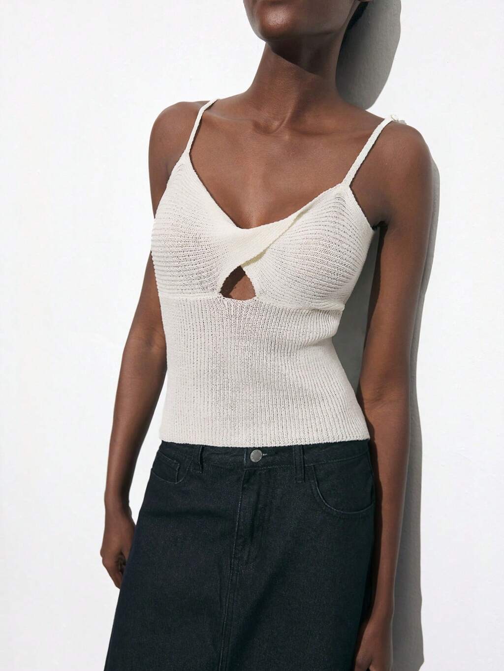 SHEIN Maija Nuova canotta slim fit con design a nodo, con spalline sottili, adatta per festival musicali, vacanze al mare, casual quotidiano, resort romantici urbani, adatta per uscite, feste, matrimoni, stile vintage chic, laurea. primavera/estate 2025.