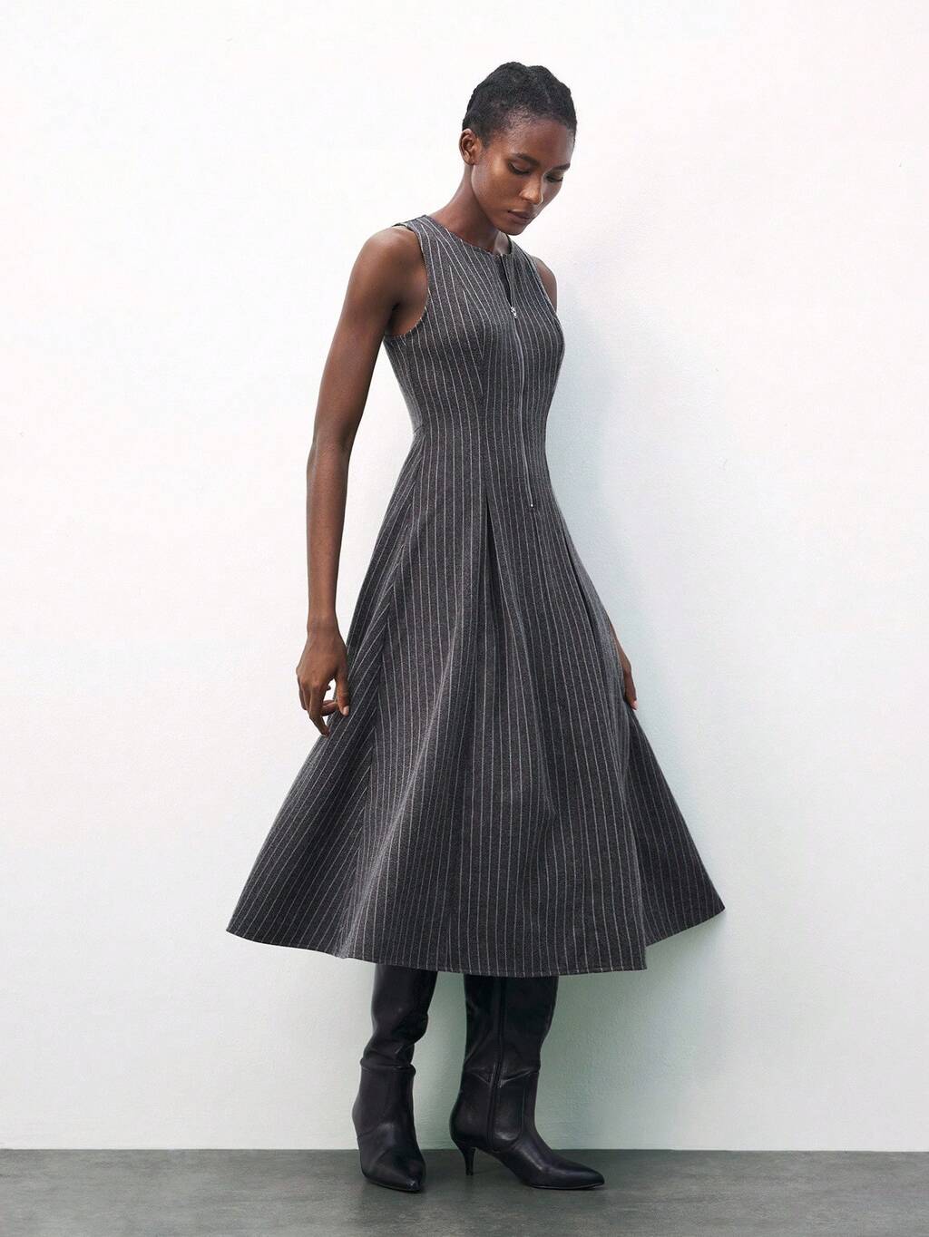 SHEIN Maija Abito casual da donna con cerniera, scollo rotondo, senza maniche, a righe e plissettato
