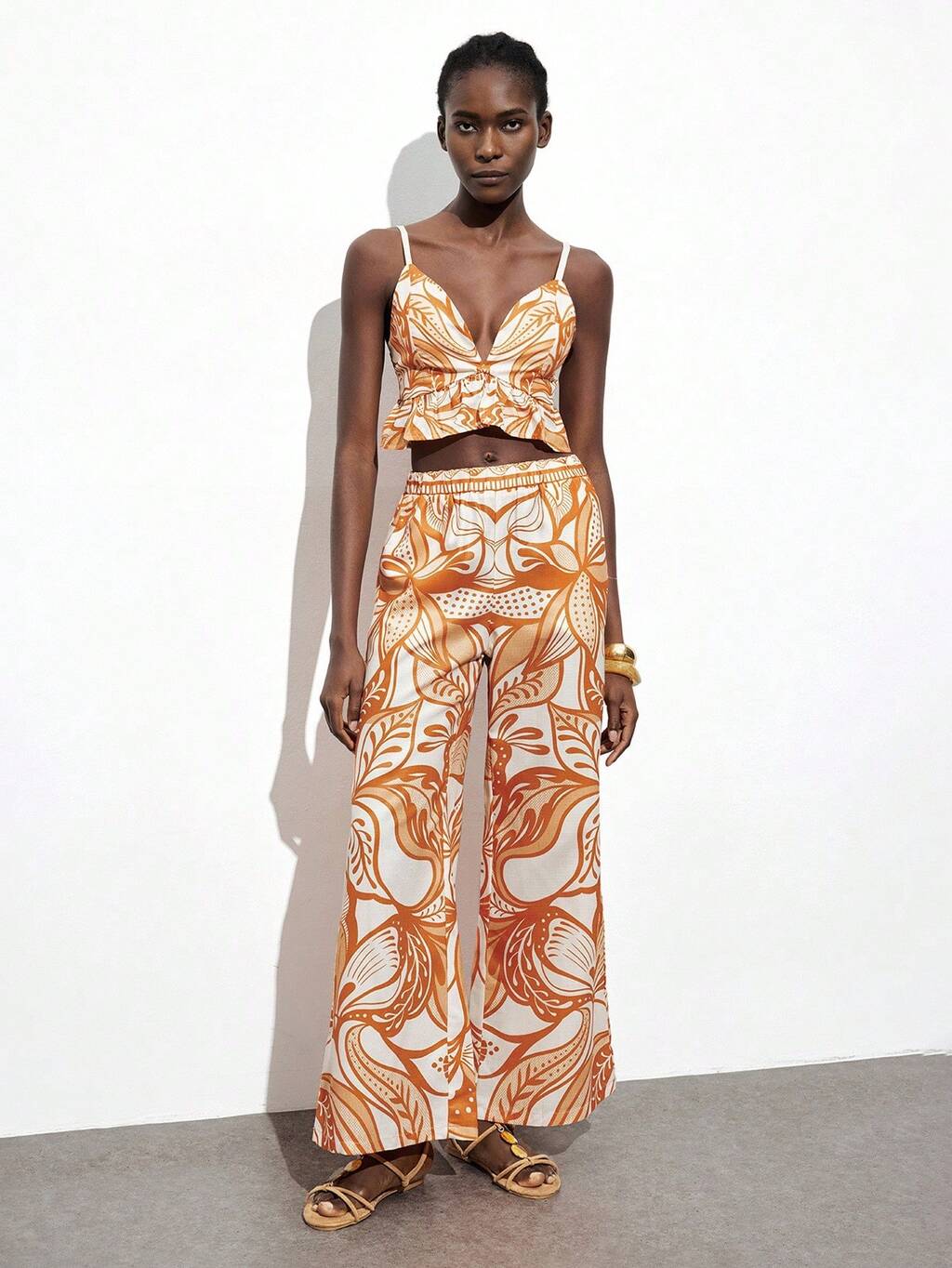 SHEIN Maija Pantaloni da donna con stampa floreale, vita elastica e tasche inclinate, pantaloni casual da ufficio, pantaloni a gamba larga di base, pantaloni da spiaggia stile bohémien per resort di isole, vintage