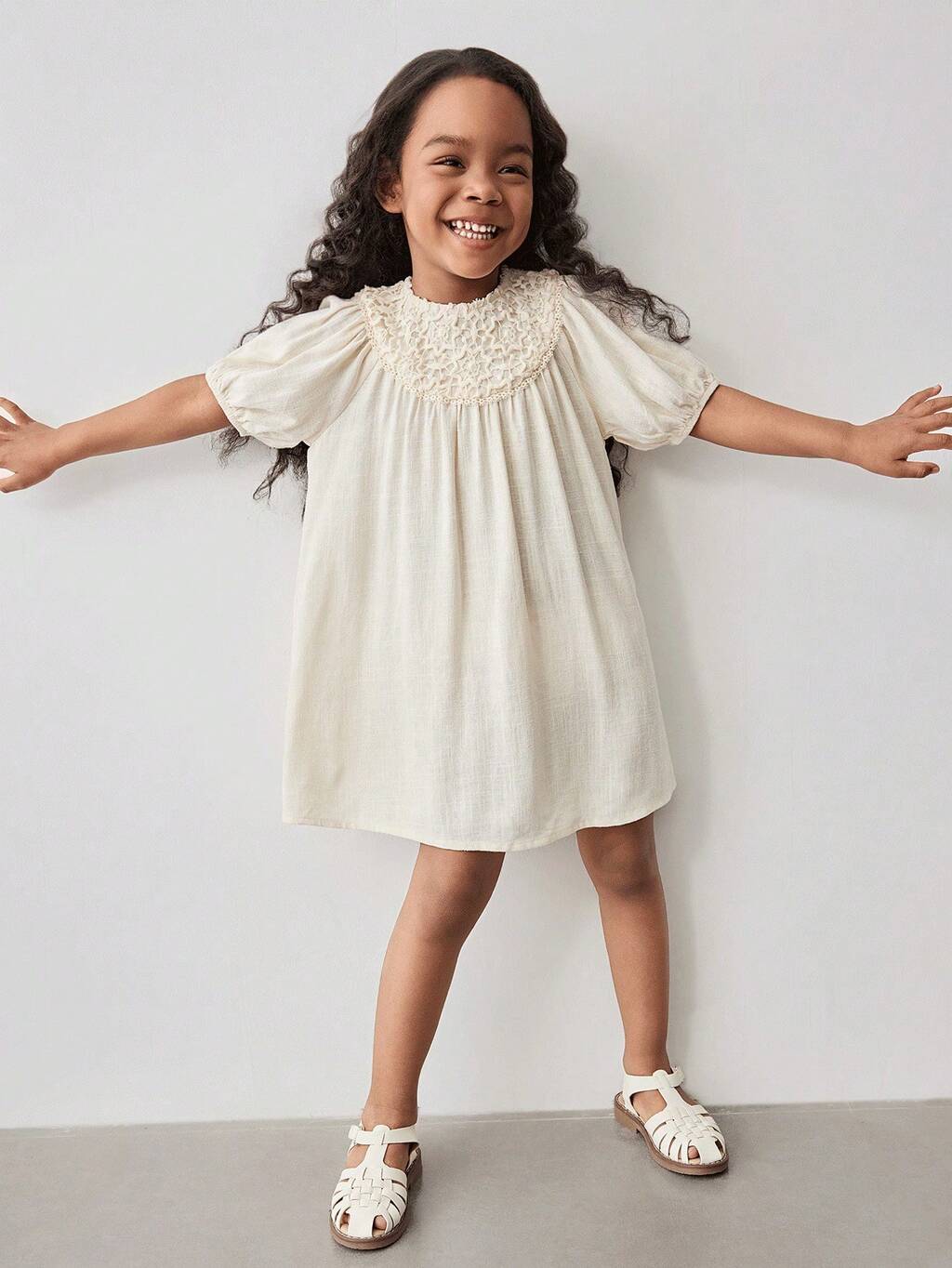 Abito giovane casual ampio e spensierato dalle maniche a palloncino, di colore bianco