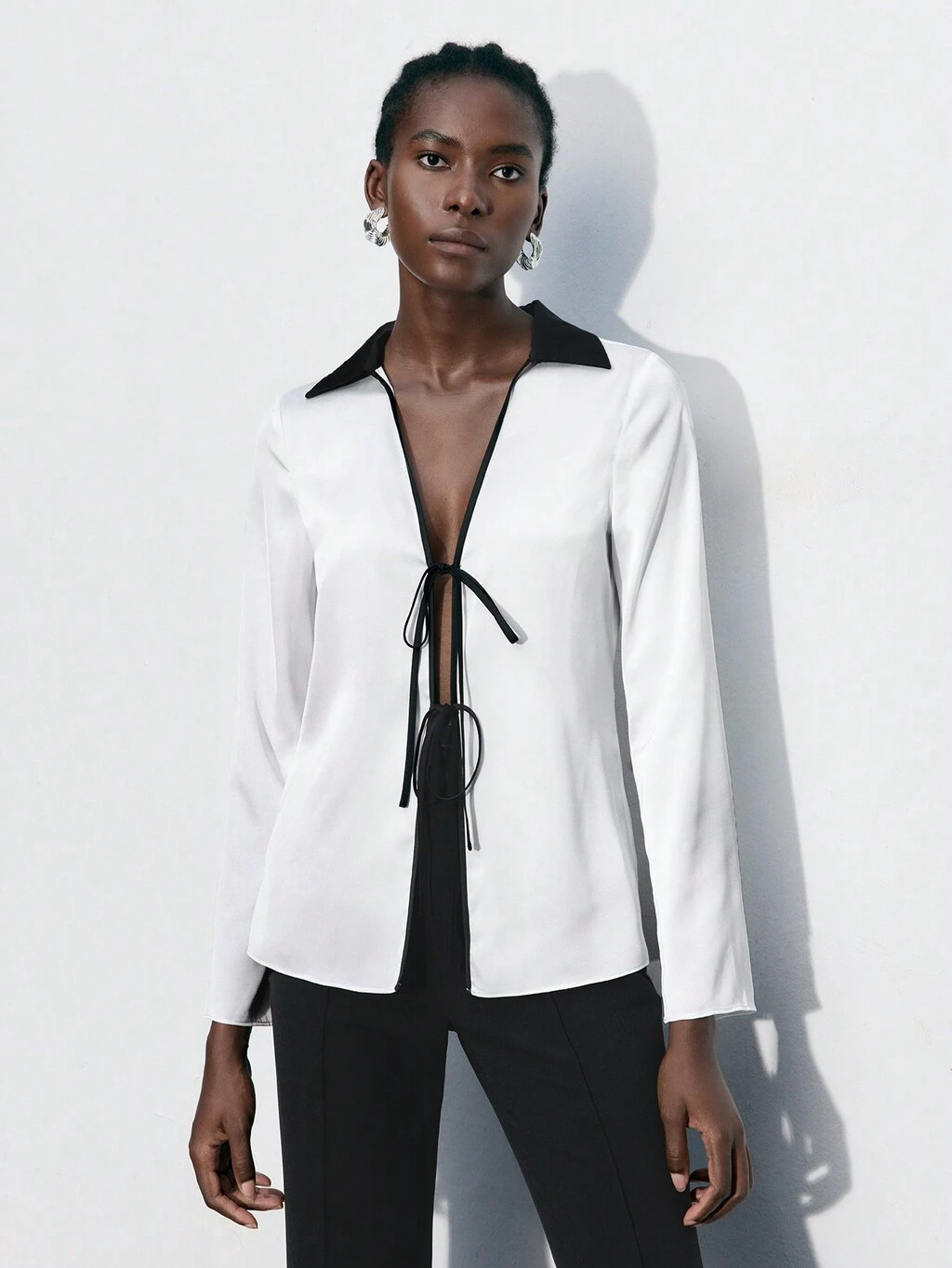SHEIN Maija コントラストカラー&フロントタイ付きカジュアルブラウス、秋の新学期