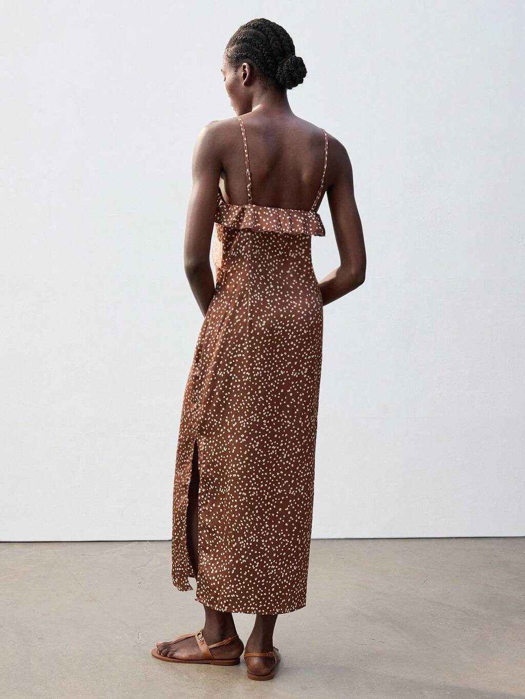SHEIN Maija 春夏新作 ブラウン 織り柄サテン フリル フローラル アーバン バカンス モダン エレガント ロマンチック レディース ロングドレス、お出かけ ホリデーパーティー ミュージックフェスティバル向け