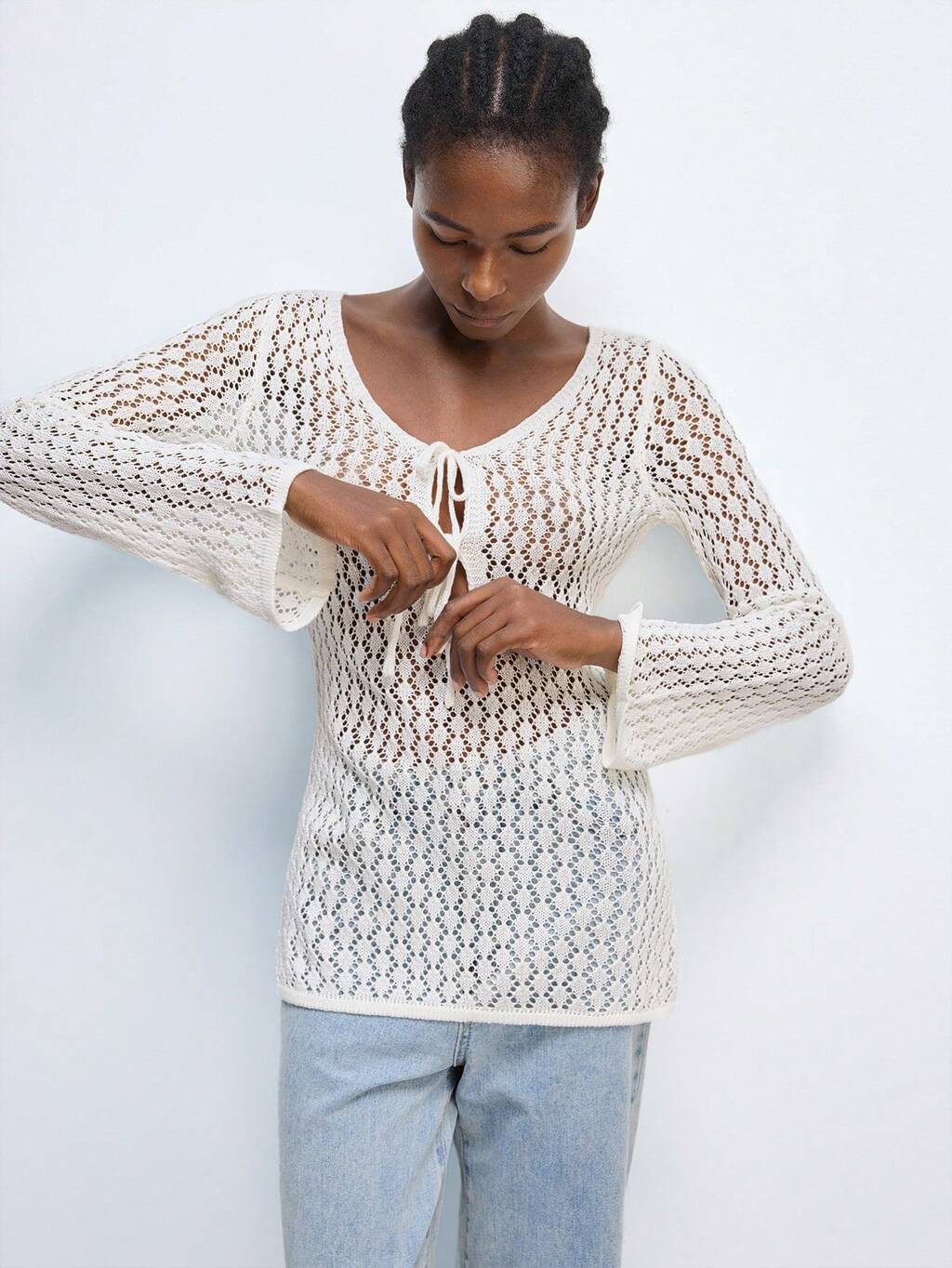 SHEIN Maija 女性用 2025年春夏新作 ひし形柄ニットUネック バタフライスリーブ フロントタイ ニットトップス、ビーチホリデー、カジュアルな朝食/ランチ、空港、ロマンチックな田舎のミュージックフェスティバル、独立記念日、キュートなサマートップスに適しています
