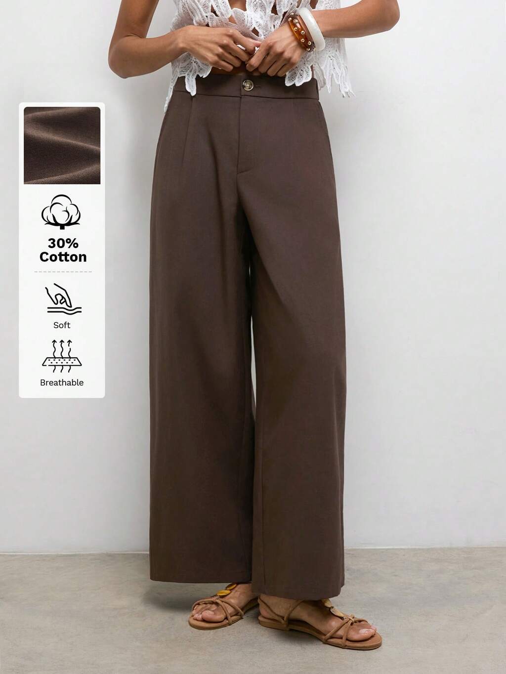 SHEIN Maija レディース カジュアル ルーズ ワイドパンツ、無地、夏秋シーズン、都会的通勤、ビジネスカジュアル、オフィスウェア、教師の服装に適しています