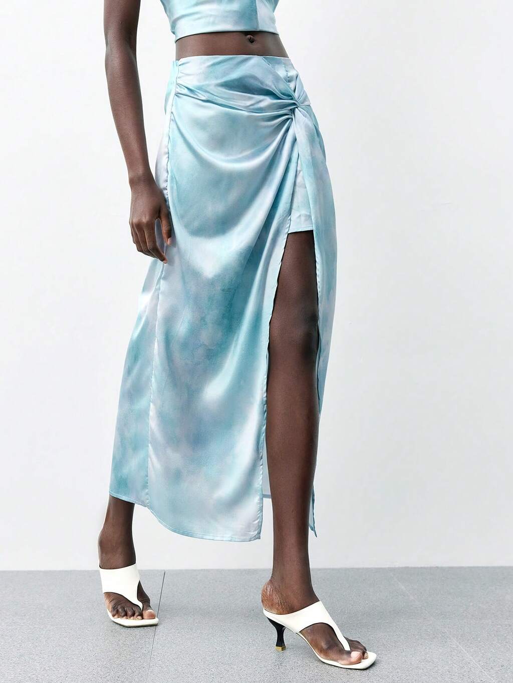 SHEIN Maija ボヘミアンカジュアルファッション エレガントなツイスト ラッシュスカート、ビーチリゾート バケーションスタイル オールシーズン対応、モダンなホリデーファッションデザイン、快適なビーチ、ボヘミアンスタイル、サマードーパミンホリデーウェア、ホリデー