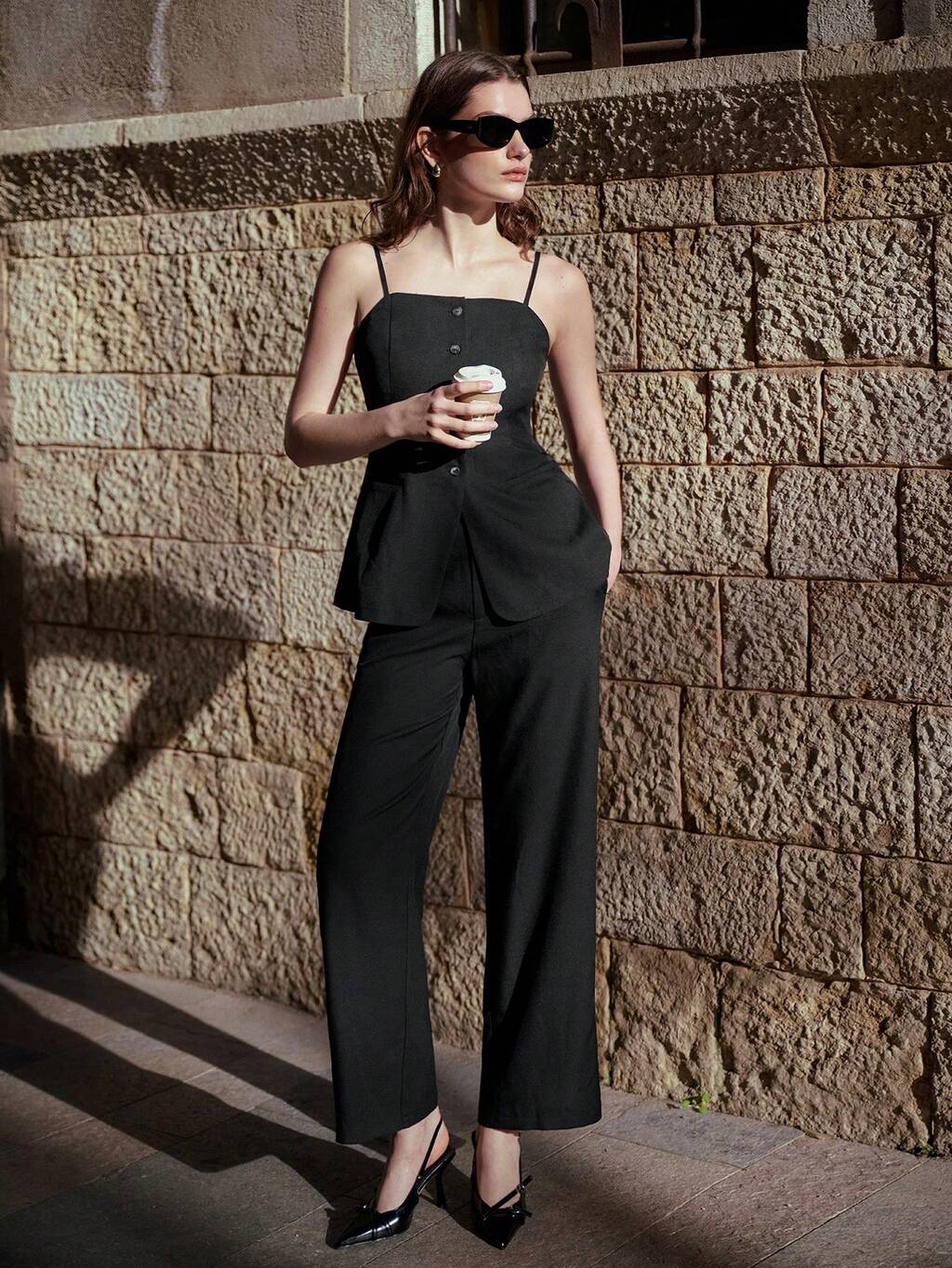 SHEIN Maija 春夏新作 黒編み込み ウィメンズ ズボン、スーツパンツ、アーバン、モダンで上品、デイリーカジュアル通勤、お出かけ、バカンス、パーティー、ウェディングにも適しています