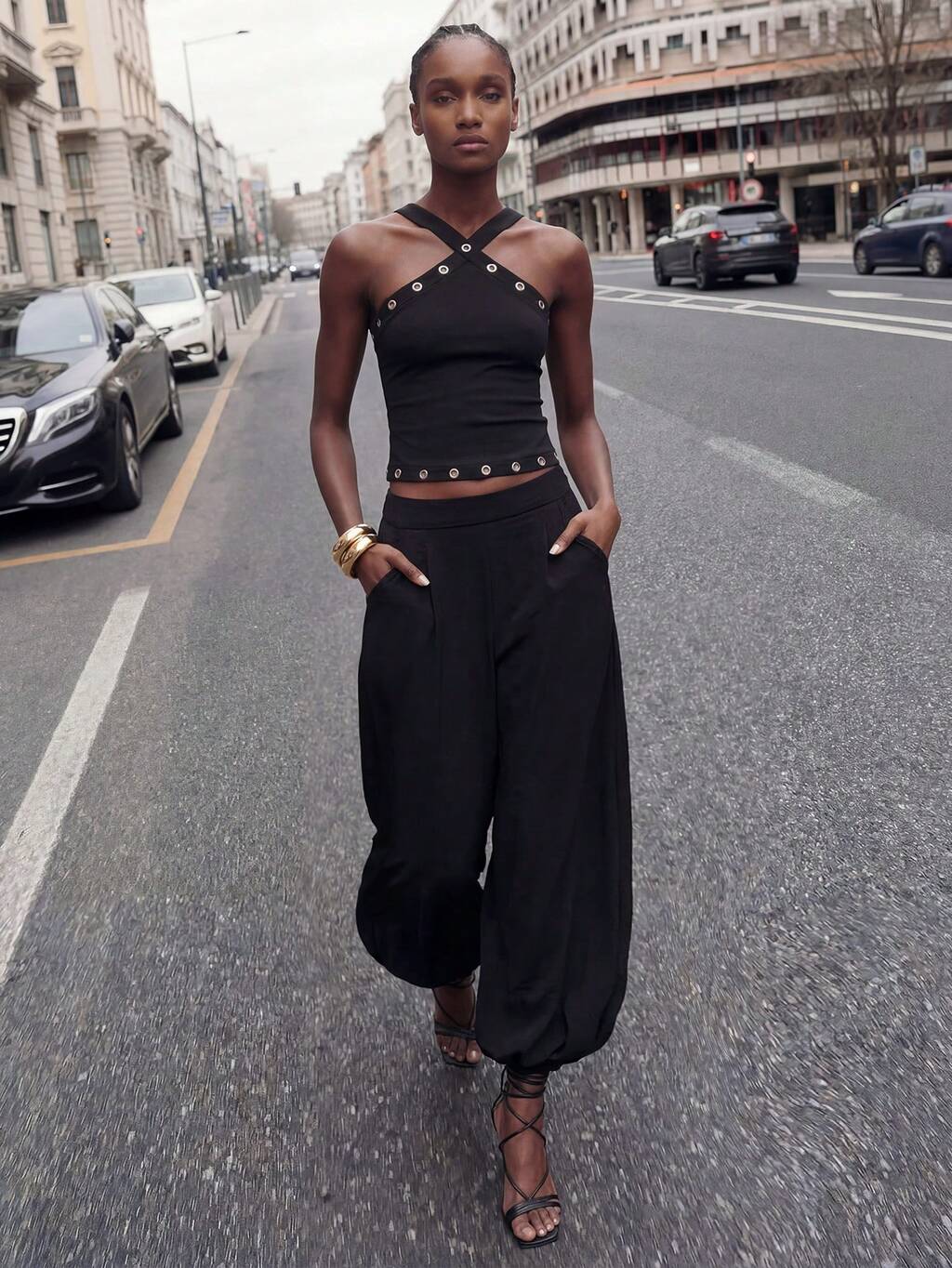 SHEIN Maija ジョガーパンツ レディース カジュアル ウーブン ファブリック ブラック 無地 ジッパー アクセント