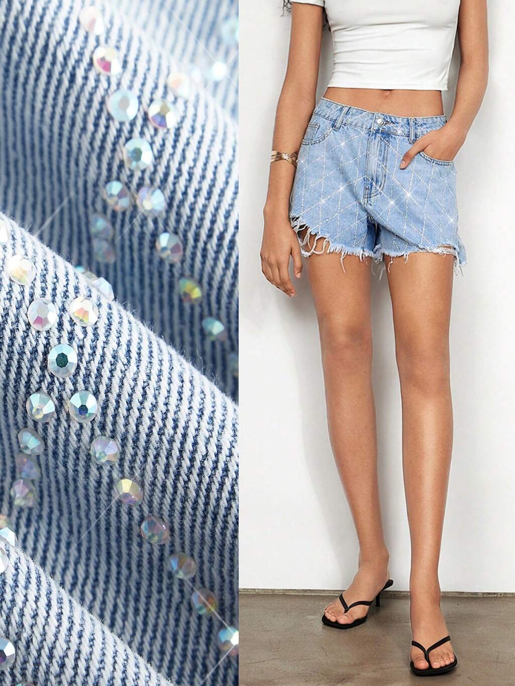 SHEIN Maija ブルーデニムショーツ ラメ輝き ダイヤモンド調 ホットサマー ミュージックフェスティバル