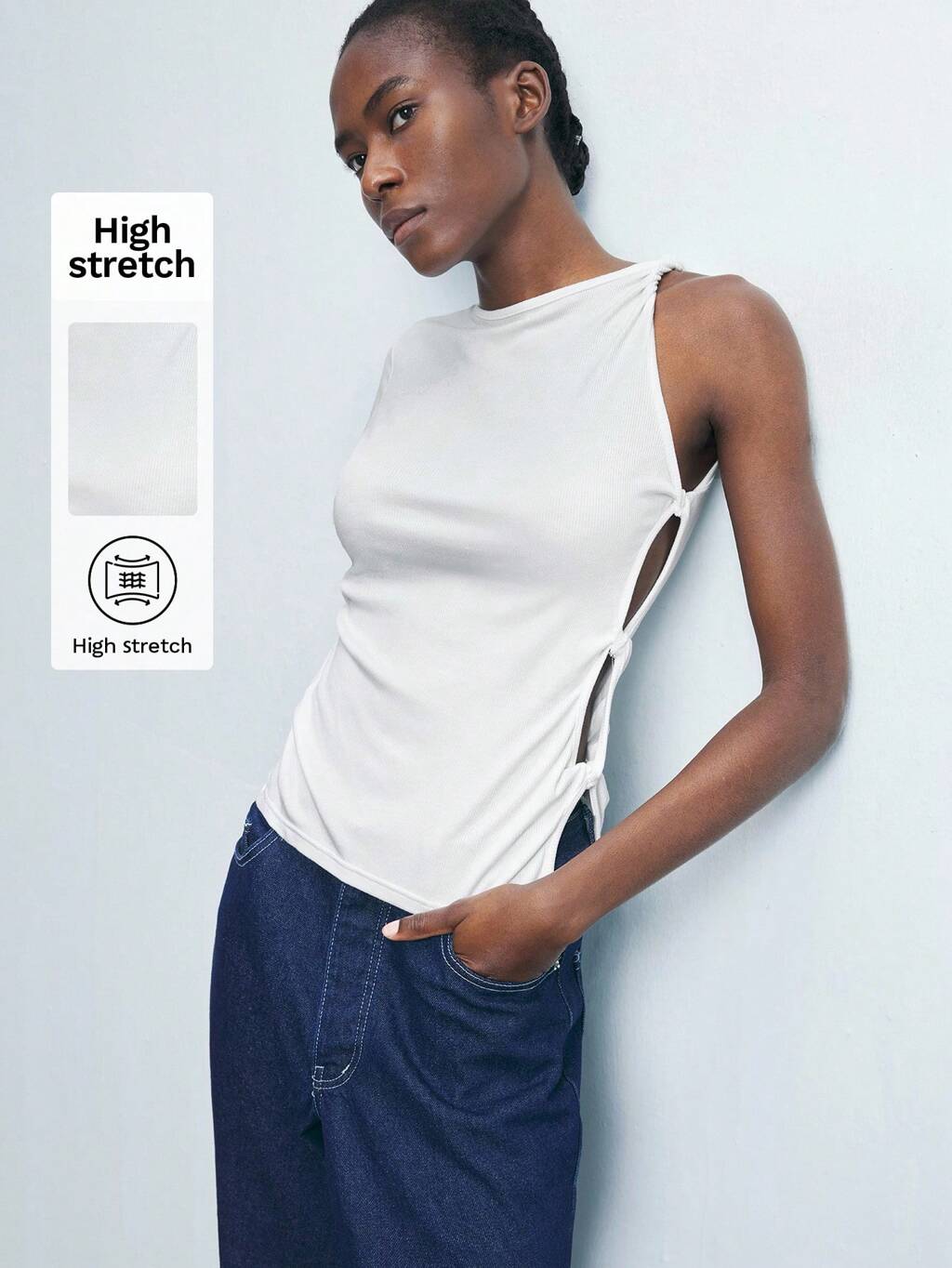 SHEIN Maija 白リブ 1スリーブ 中空 ツイスト デザイン フィットトップ、ミニマリストファッション アーバンシック スタイル、多用途ホリデー ウェア