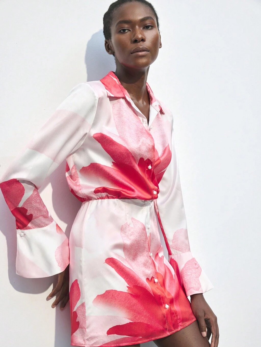 SHEIN Maija フローラル柄 フレア袖 エレガントなシャツドレス レディース 秋