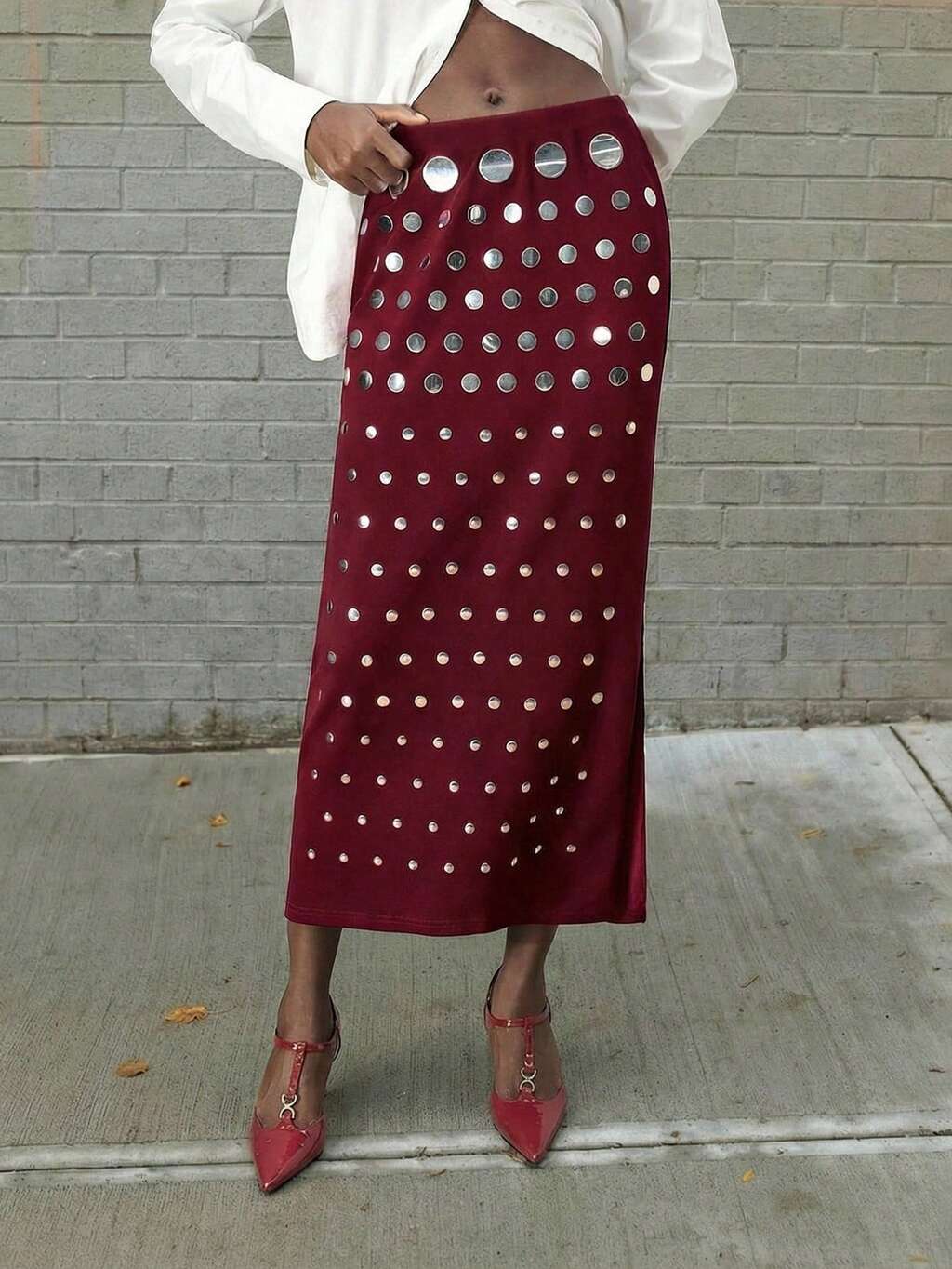 SHEIN Maija 女性用ロング スパンコール装飾スカート、パーティー、通勤、ビジネスカジュアル、オフィスウェア、エレガントスタイル、春夏、バレンタインデーに最適