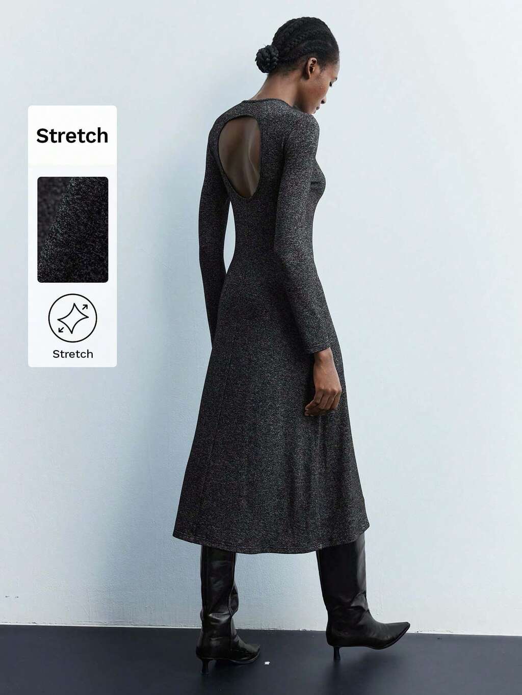SHEIN Maija 女性用ミニマリストソリッドカラーホールアウト ニットロングスリーブドレス