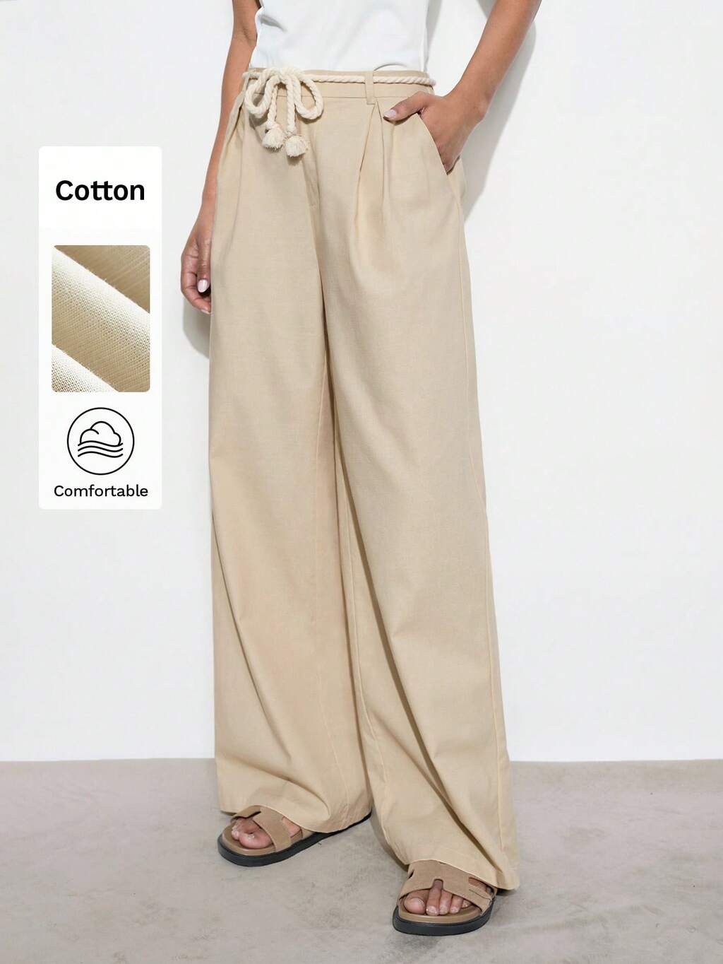 SHEIN Maija ウィメンズ ボヘミアン ウエストリボン ゆったりワイドパンツ サイドポケット付き、夏休み