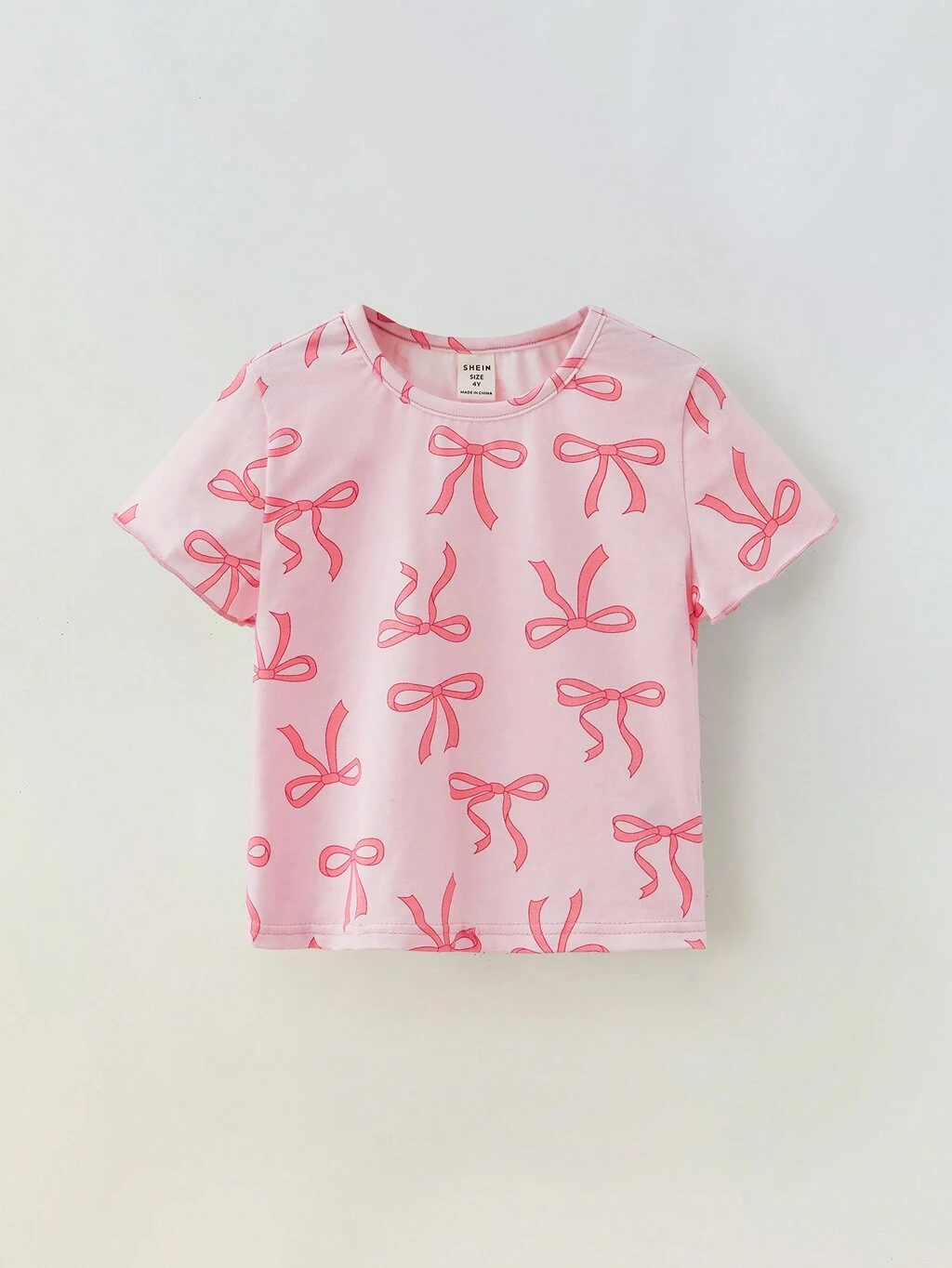 영걸 캐주얼 라운드 넥 리본 장식 반팔 티셔츠