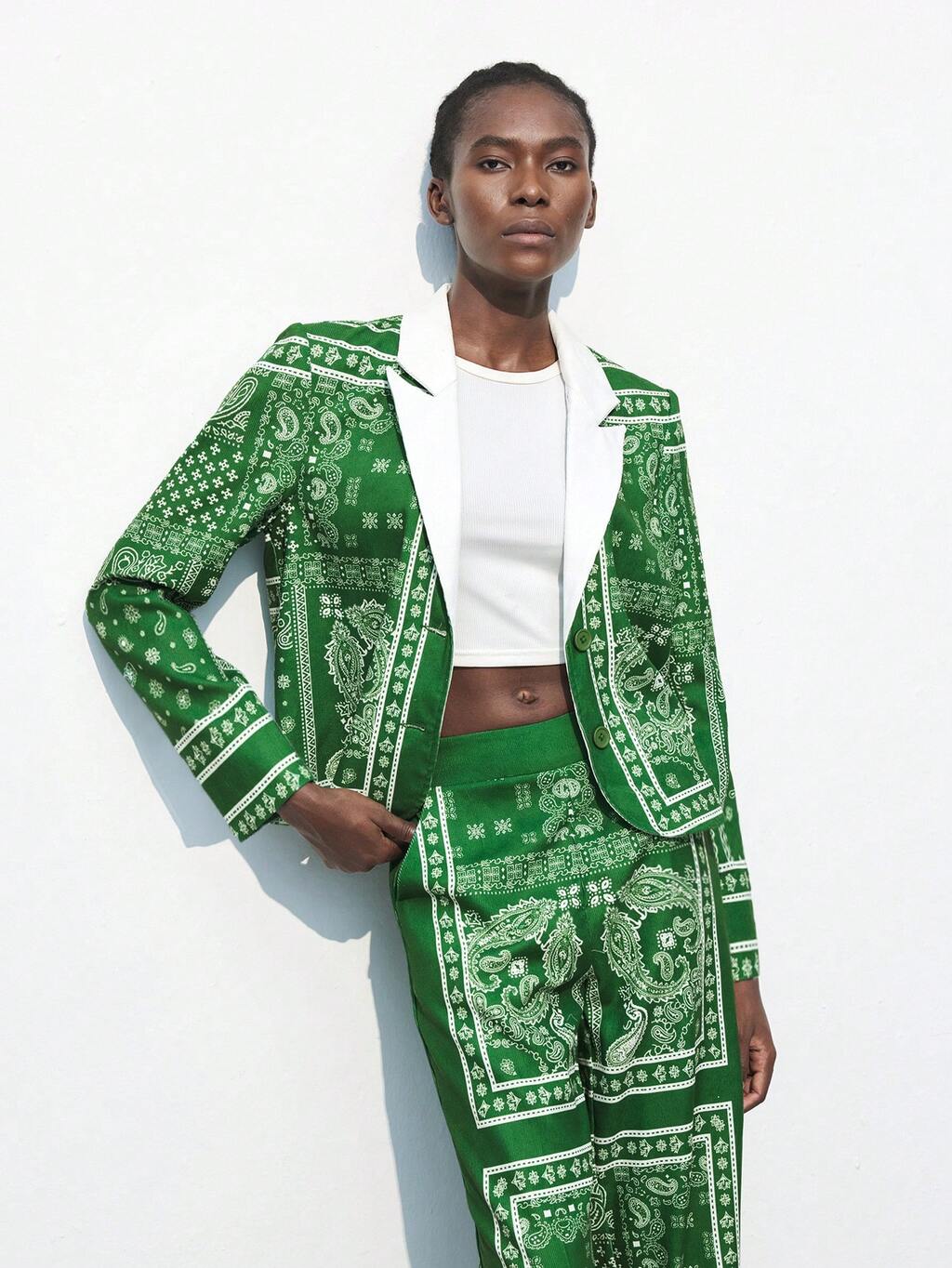 SHEIN Maija 여성용 가을 패션 페이즐리 프린트 대비 컬러 라펠 블레이저 재킷